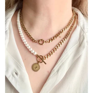 گردنبند مرواریدی قفل ملوانی با سکه ریز