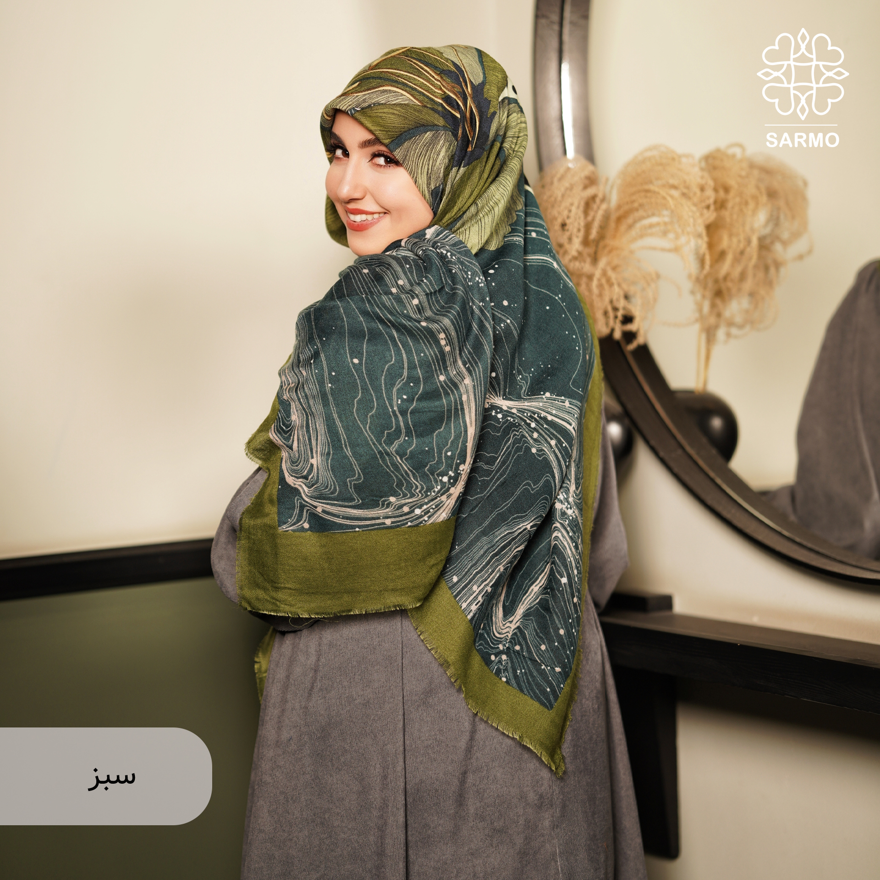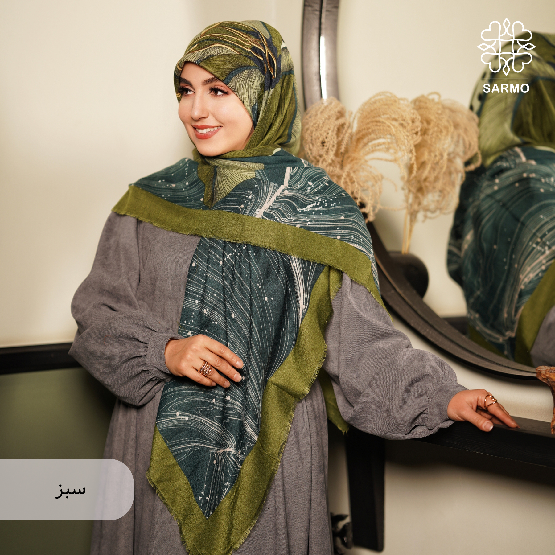 - ایستایی: ایستایی عالی، فرمی زیبا و منسجم به روسری میبخشد. (به علت آهار بالا، فرمپذیری خوبی دارد)