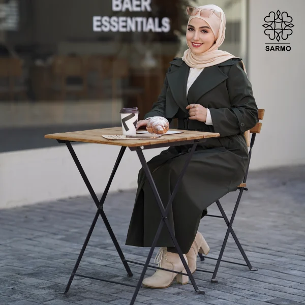 - بارانی سارمو دارای یقه انگلیسی بوده ویک شنل هم دارد که به لباس چسبیده است همچنین کمربند جداگانه ای دارد که با بندینک به کمر وصل میشود