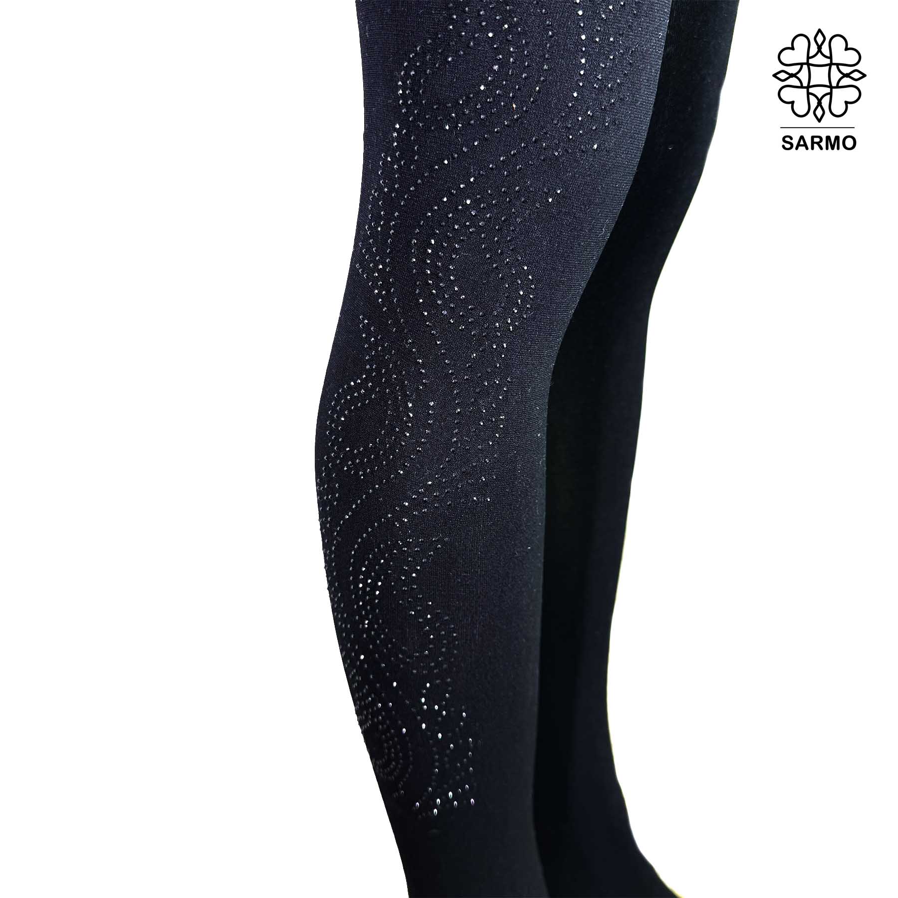 نگینهای کار شده بر روی جوراب از نگینهای تراش خورده مرغوب است که برق زیبا و قابل توجهی دارد. از چسبی باکیفیت بالا استفاده شده تا مانع از افتادن نگینهای روی جوراب شود.