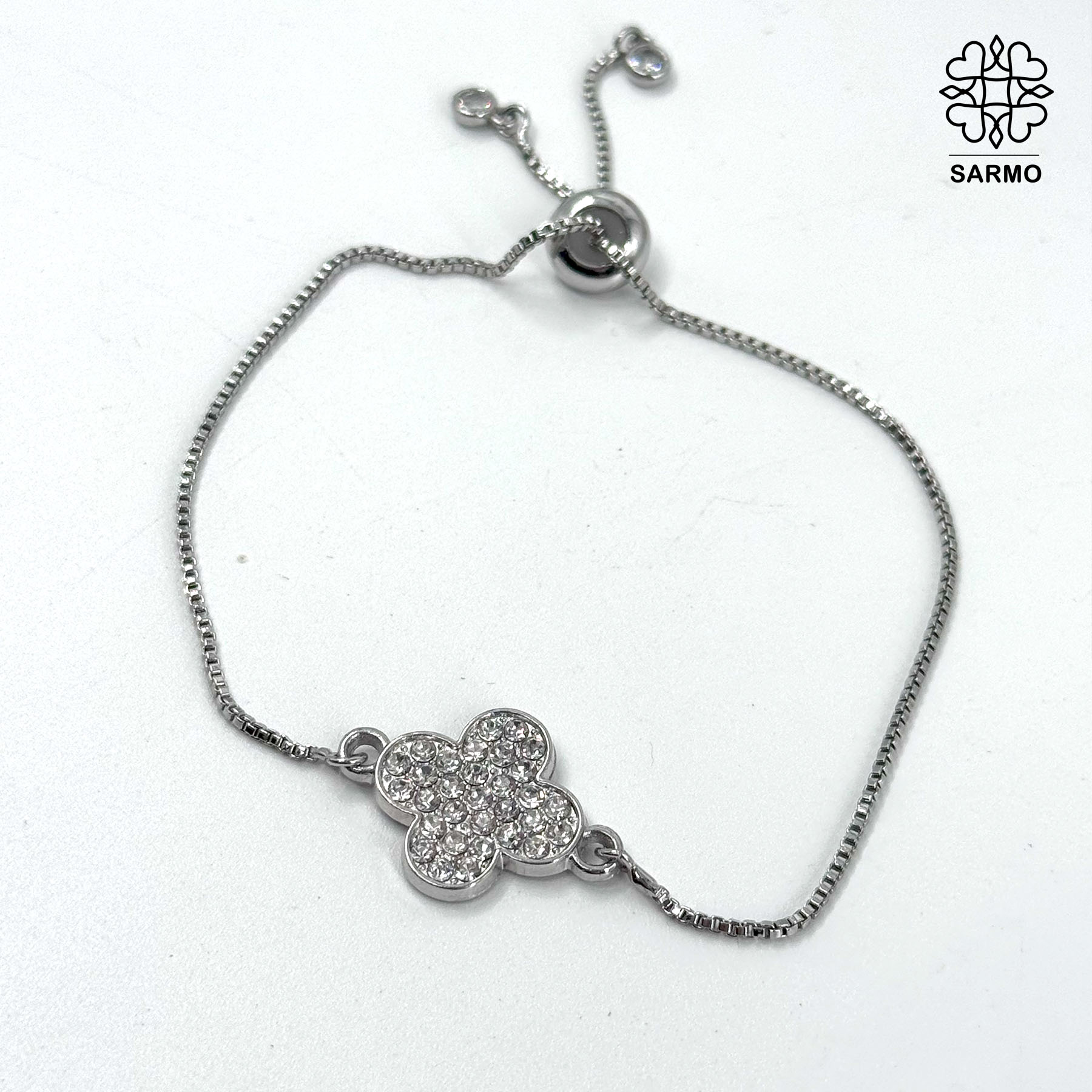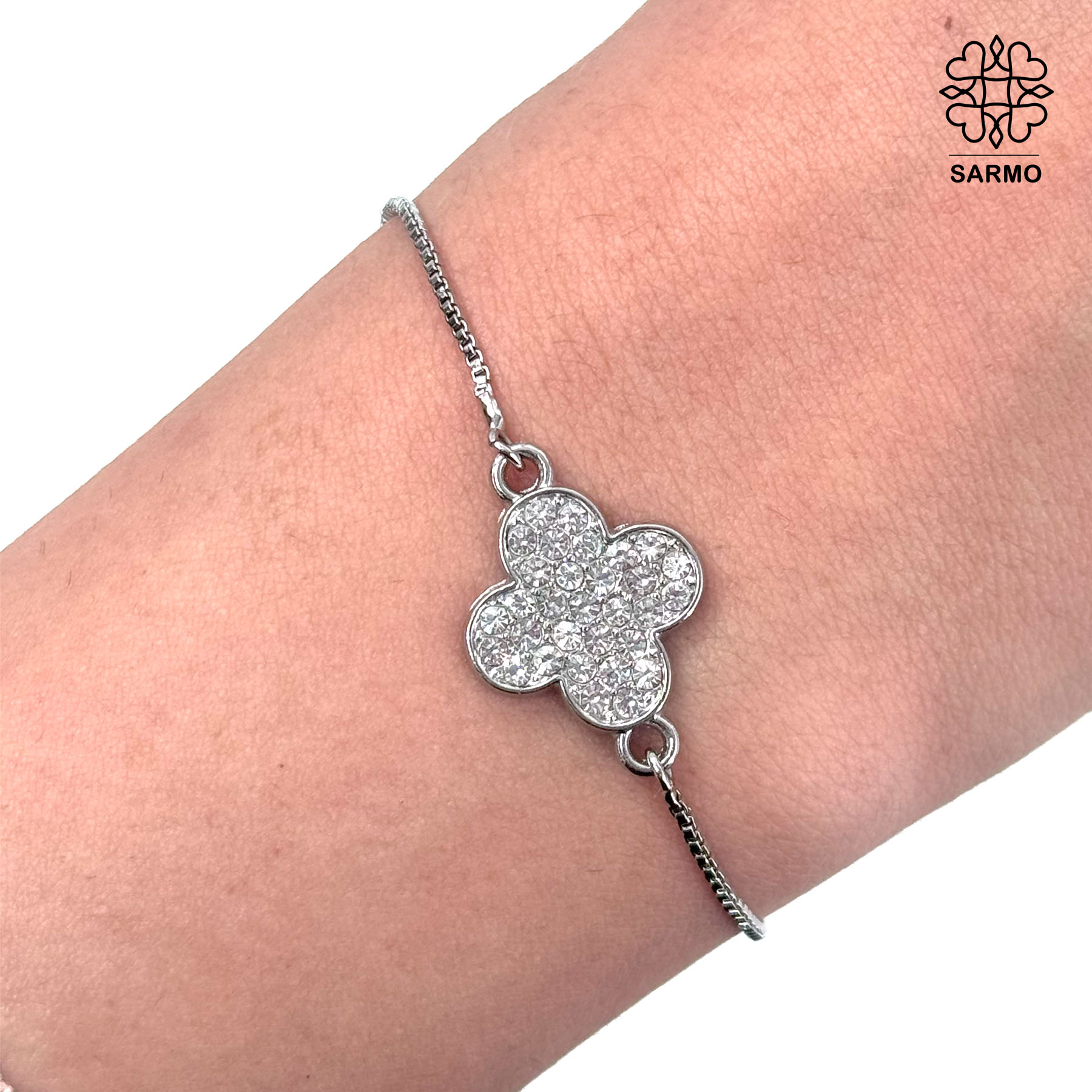 - این دستبند شیک و ظریف با طرح ونکلیف، مزین به نگینهای ریز درخشان، جلوهای لوکس و خاص به استایل شما میبخشد.