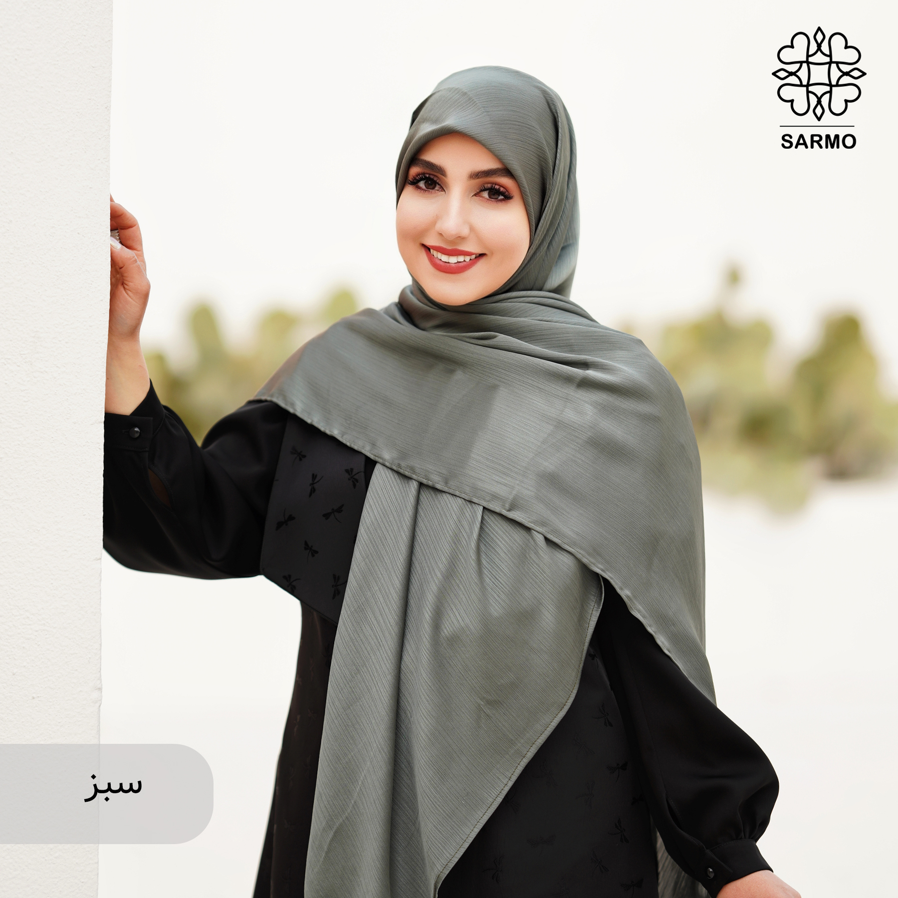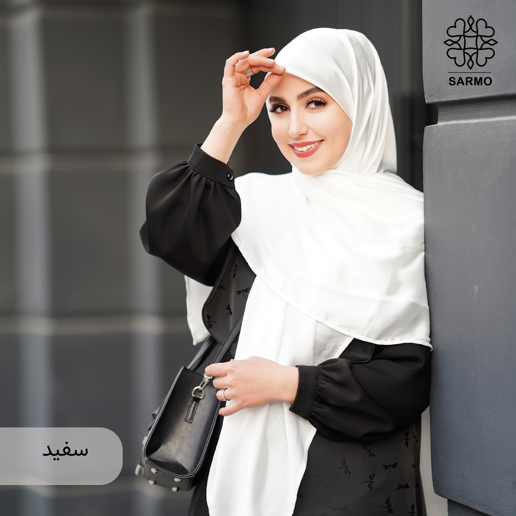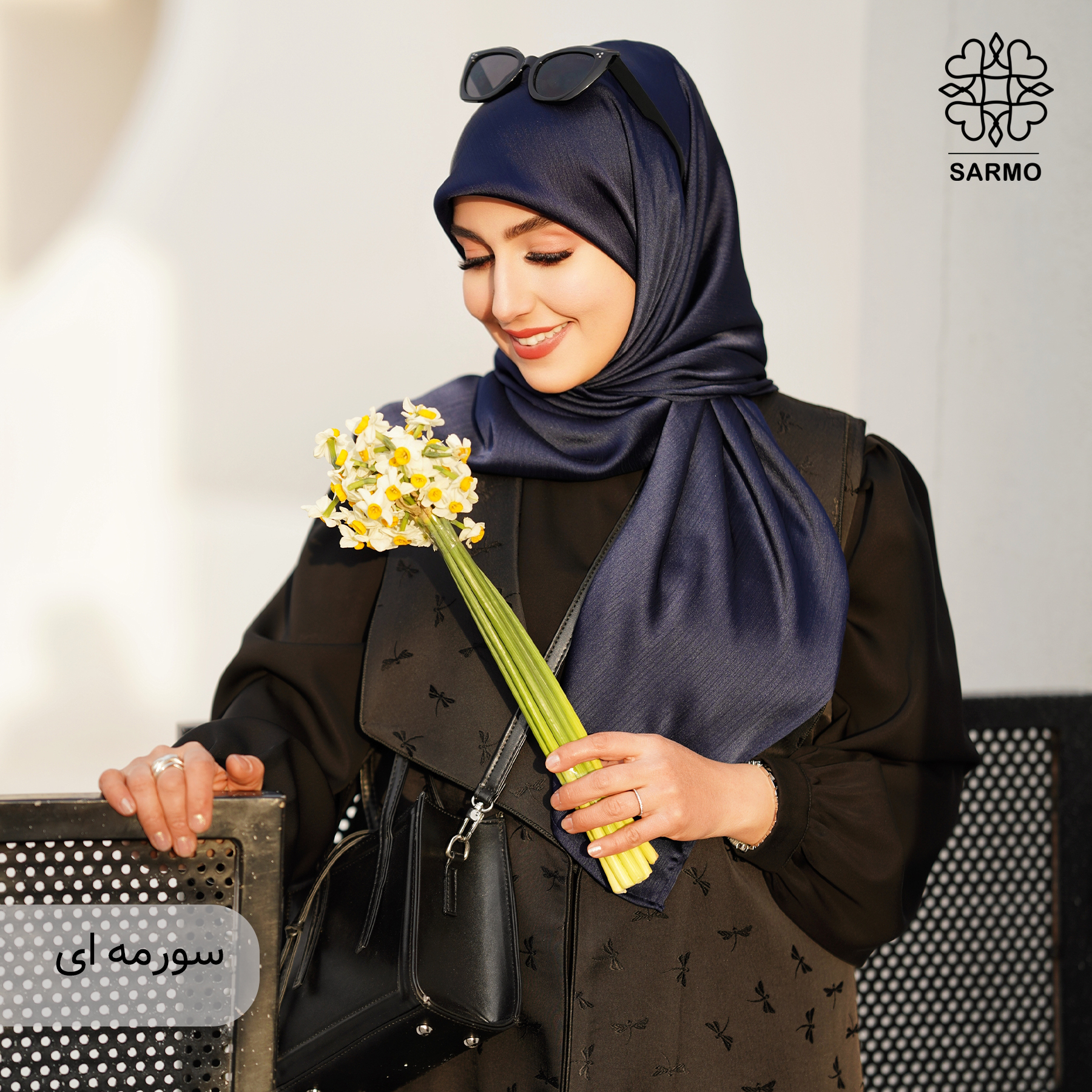 - نکته: به دلیل جنس مجلسی ساتن ابریشم، این روسری کمی سر است و برای استفاده نیاز به سوزن و گیره دارد.