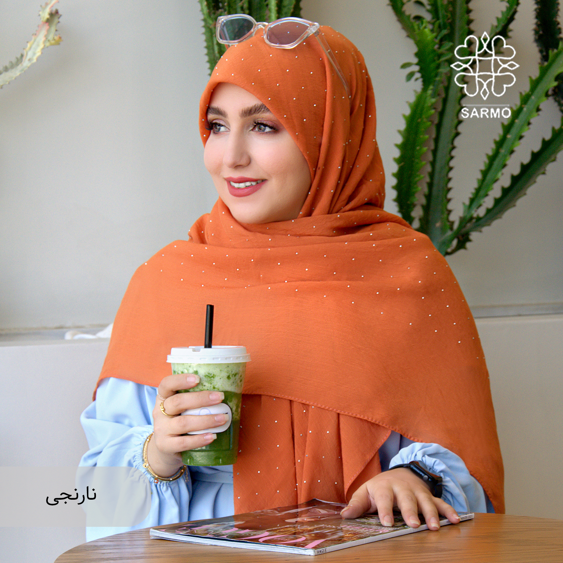 - بعد از اینکه روسری به دستتان رسید قبل از استفاده جهت استحکام بیشتر نگین های موجود، روسری را اتو کنید. اینکار را جهت افزایش استحکام نگین ها حتما انجام دهید.