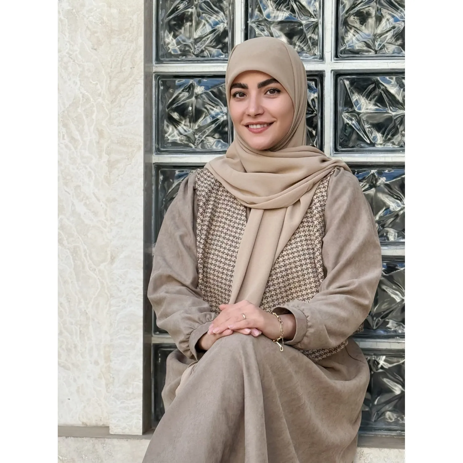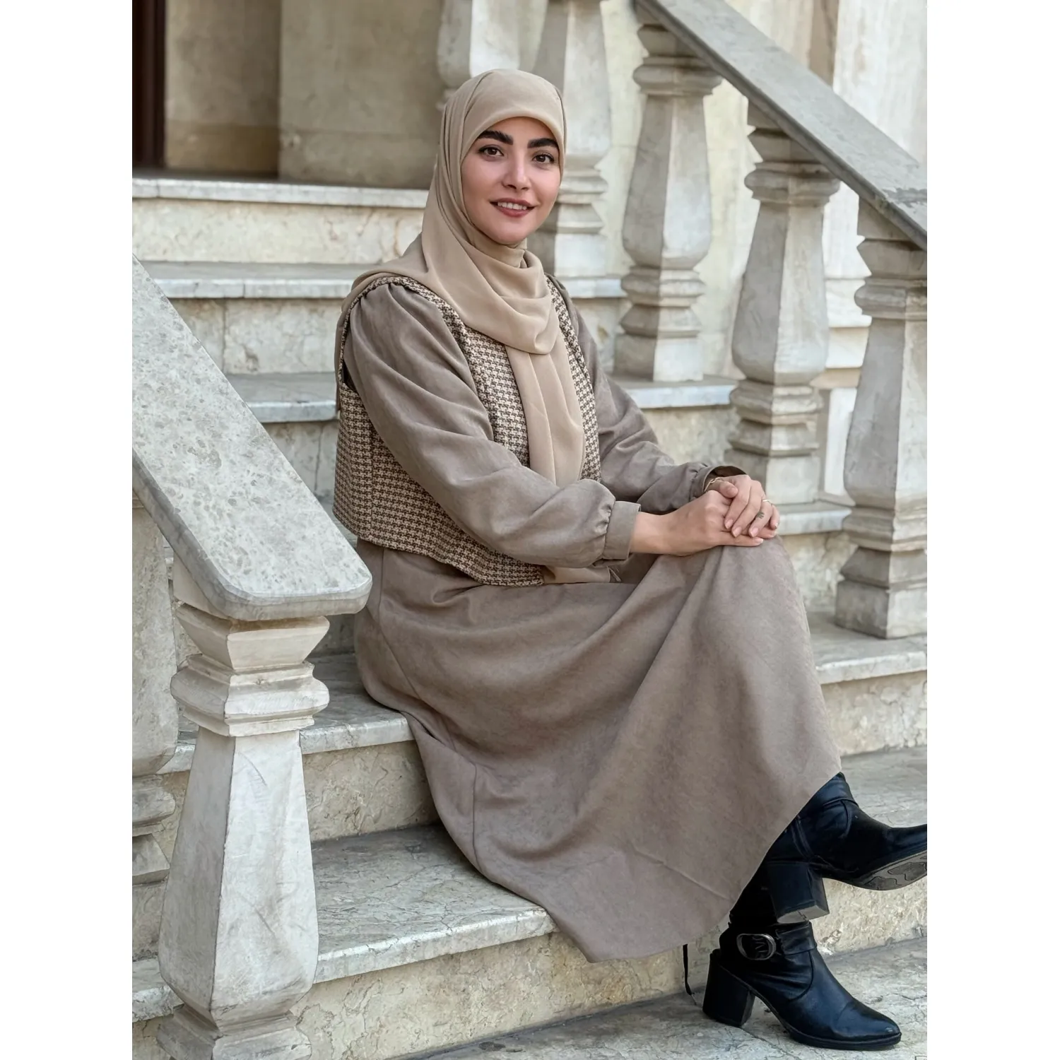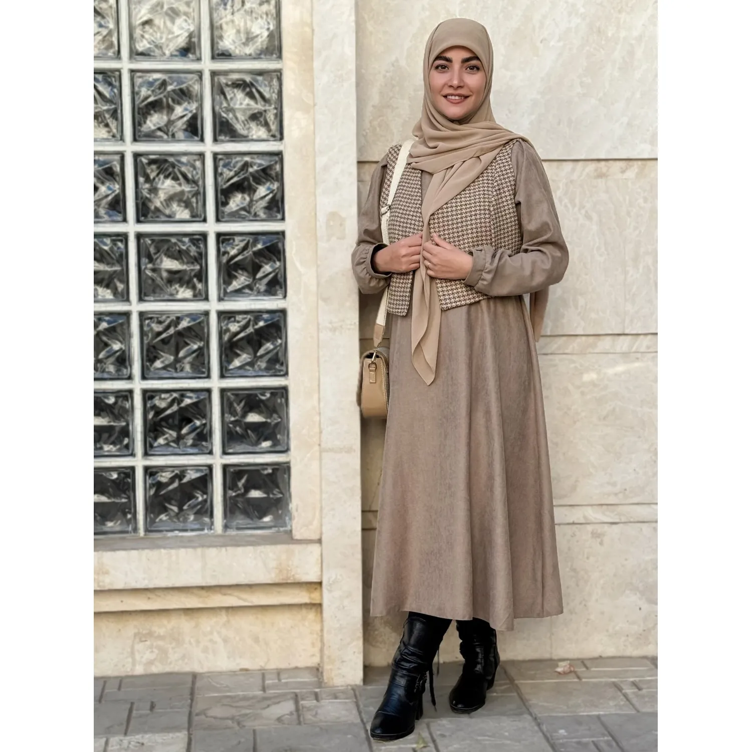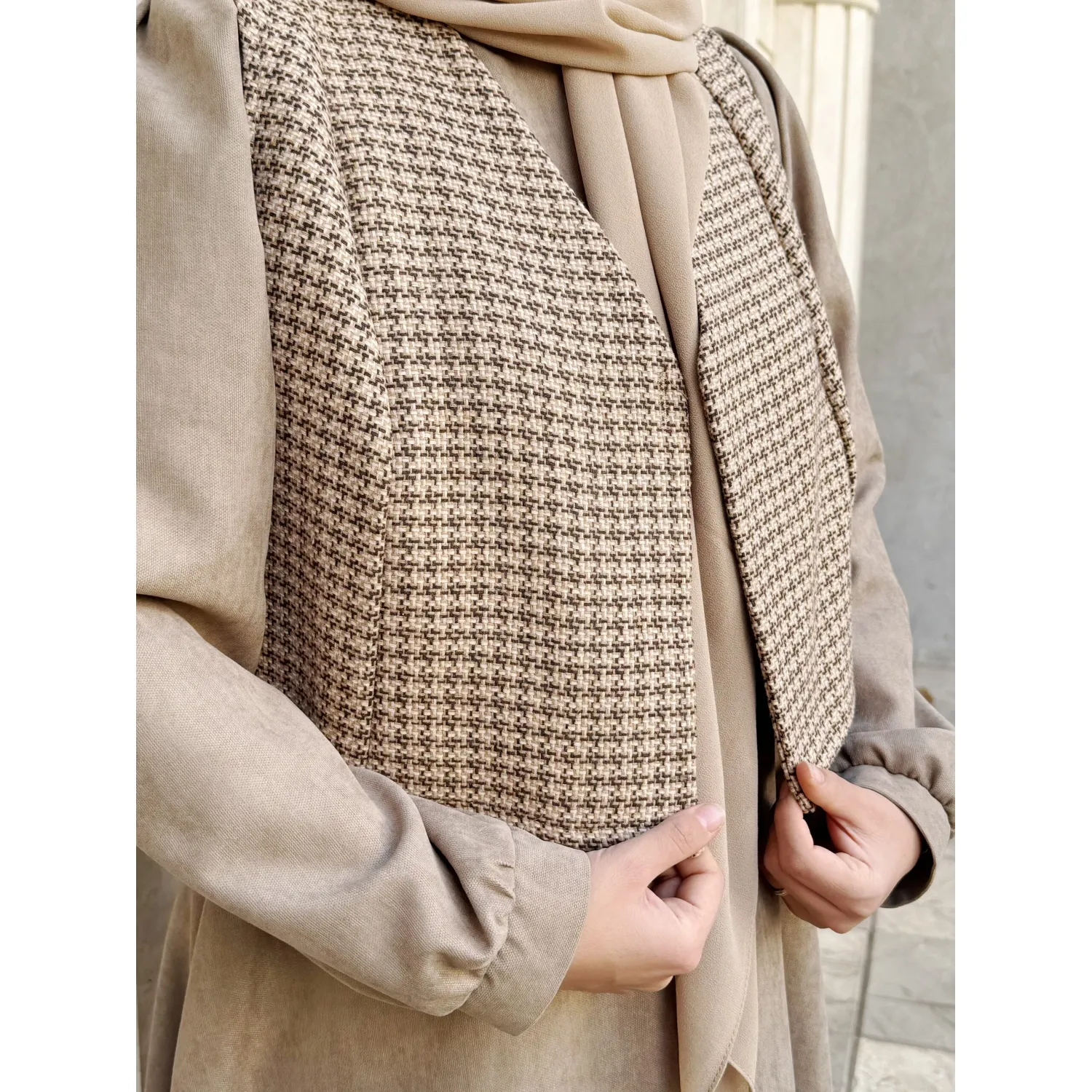 ست جلیقه و پیراهن خزان نسکافه ای