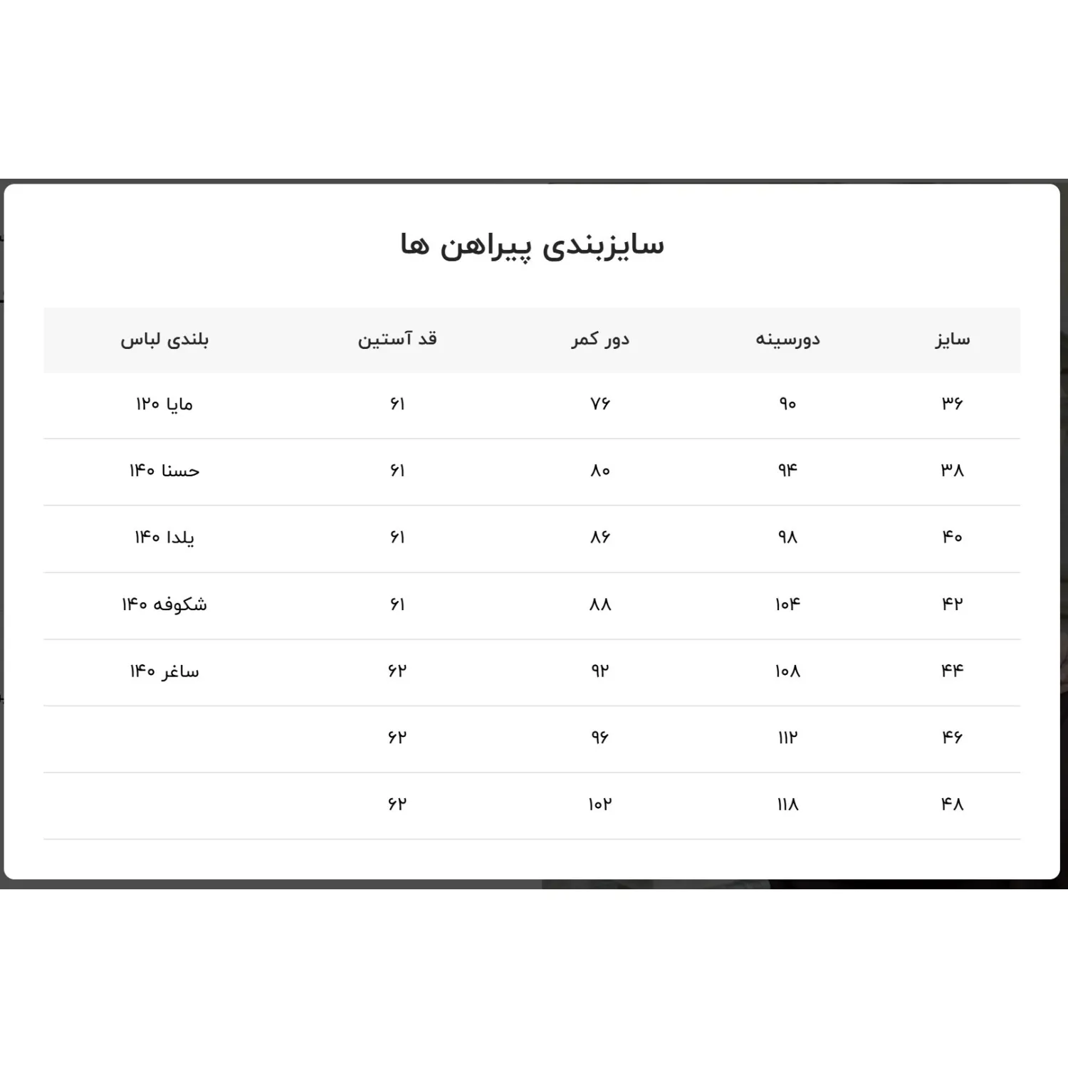 - لطفا برای انتخاب سایز به راهنمای سایز در انتهای تصاویر محصول توجه فرمایید.