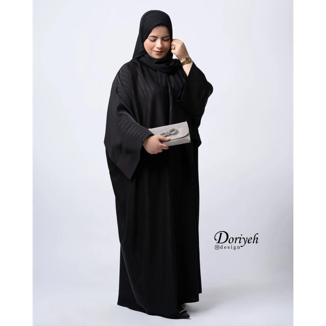 در لبههای آستین عبا دکمهمخفی دوخته شده که پوشش دست حفظ شده.