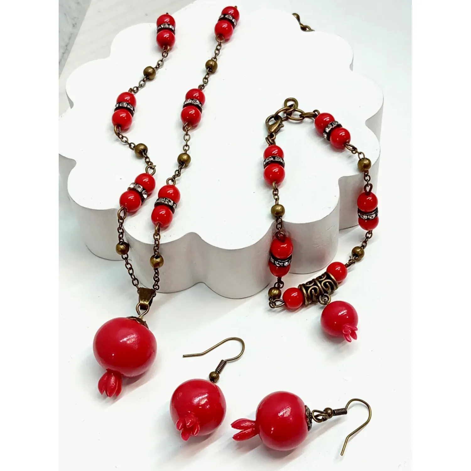 • متریال: انار رزینی، مروارید سنگی، زنجیر برنزی