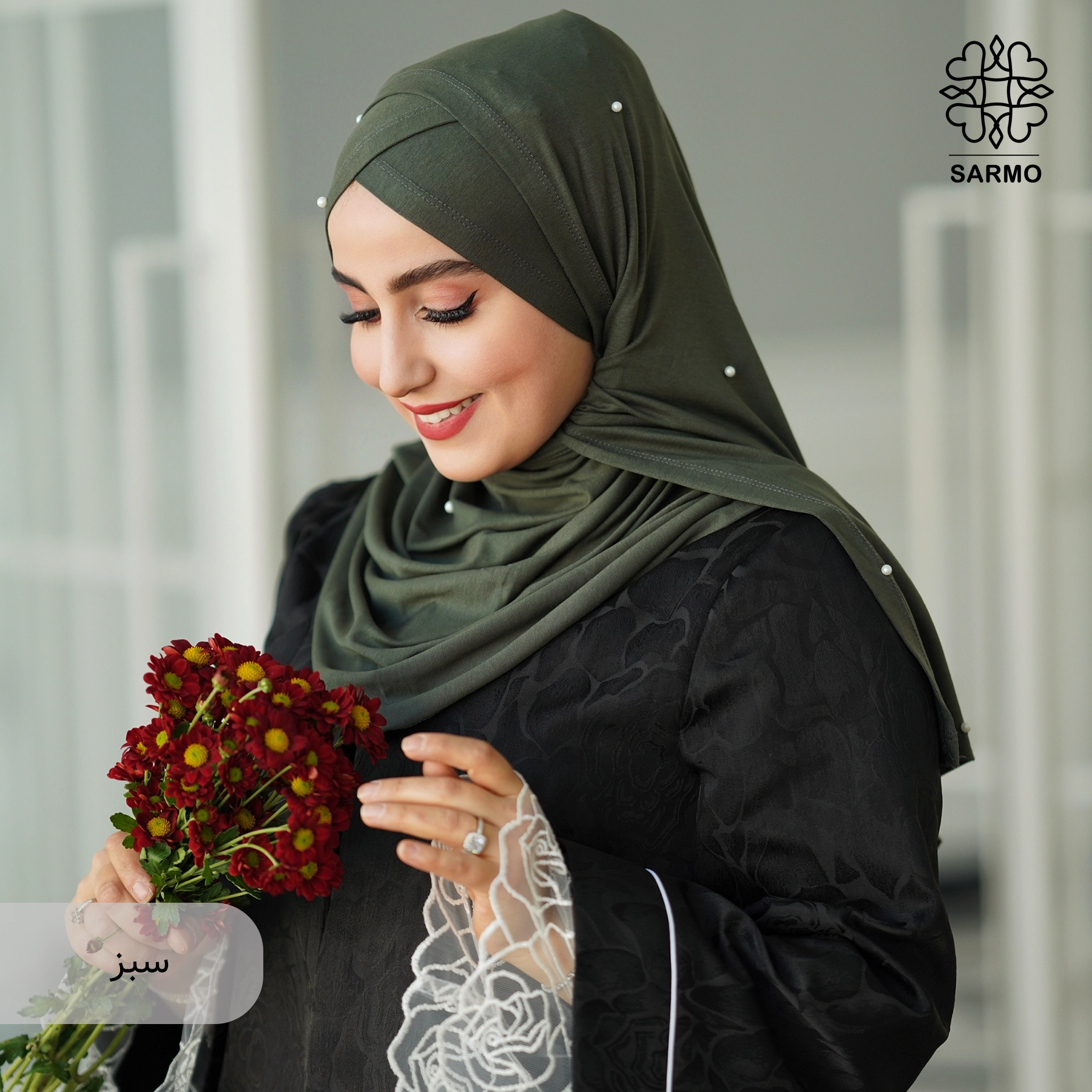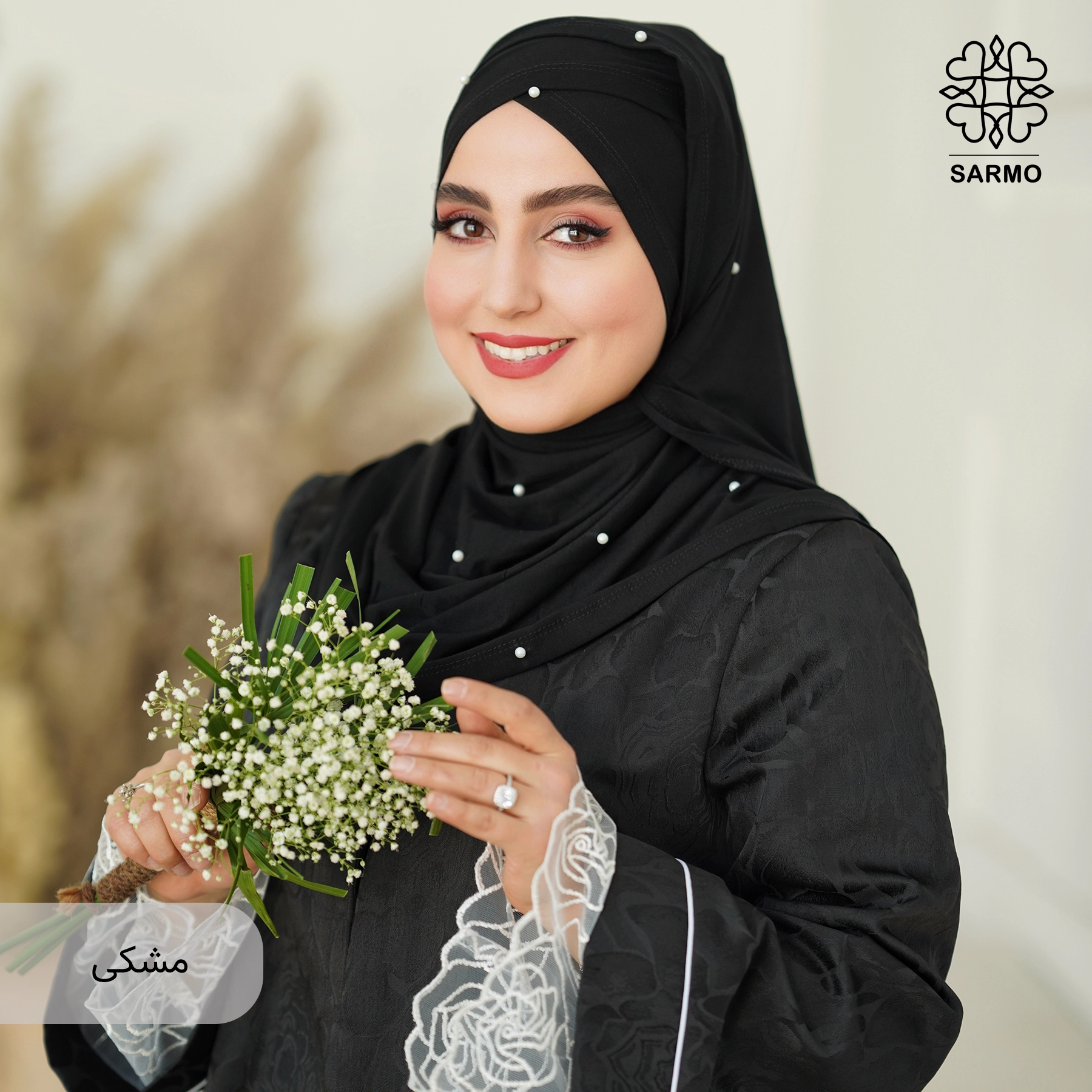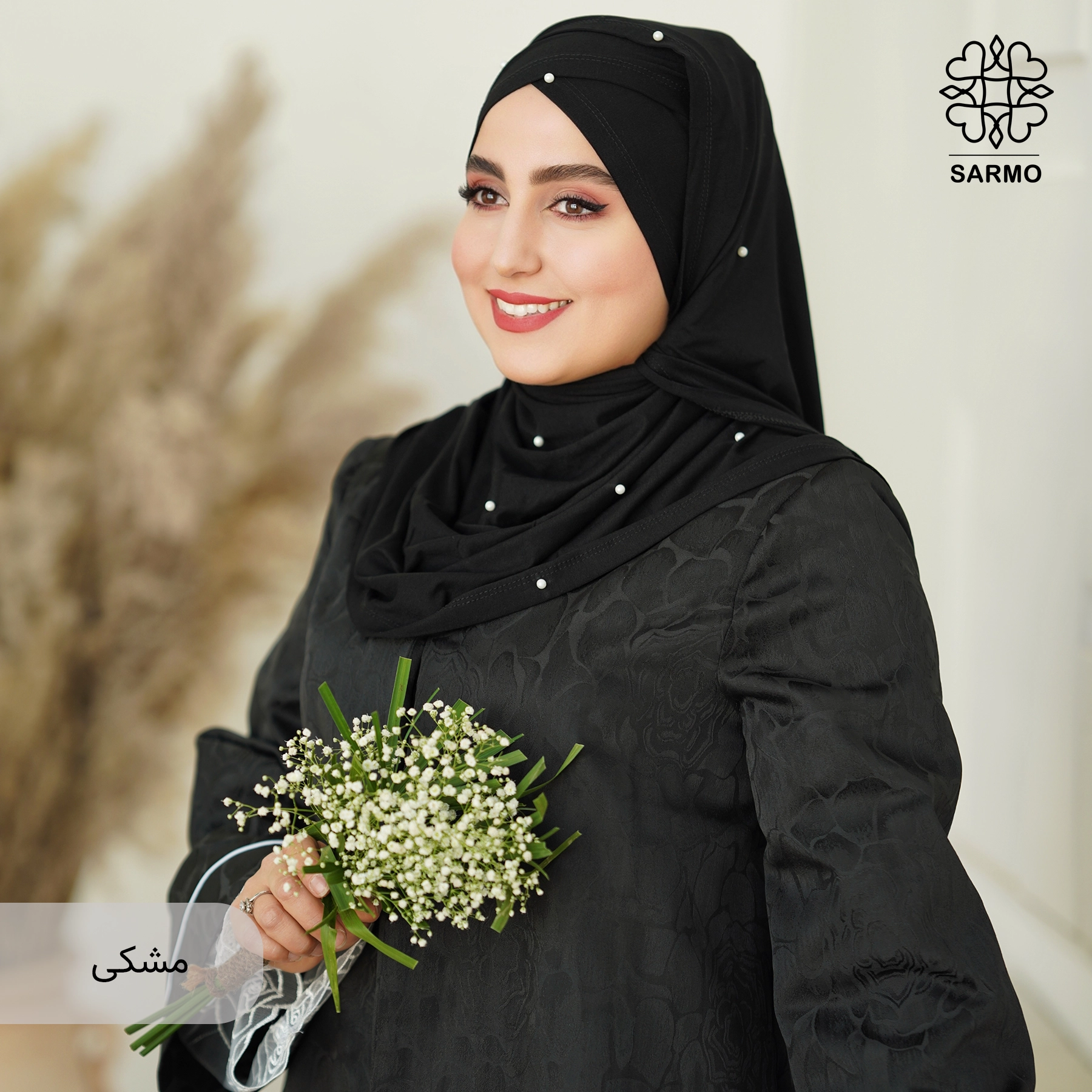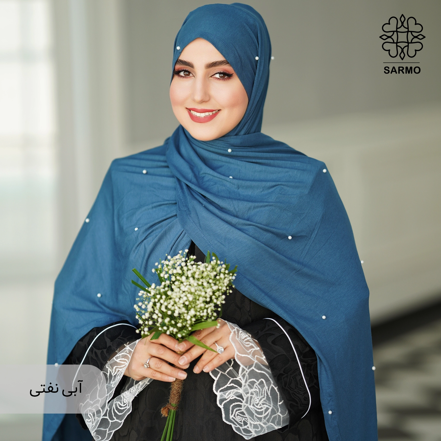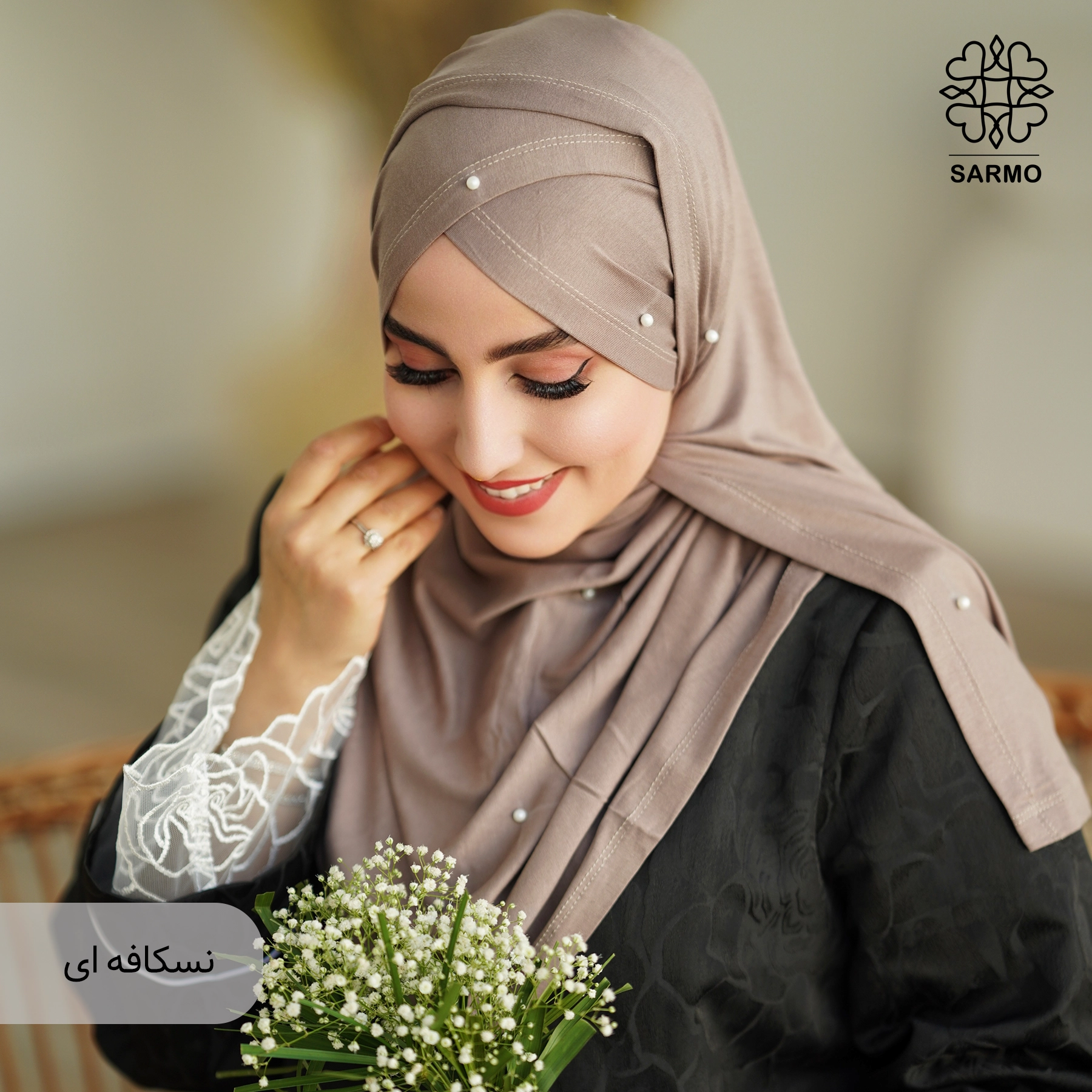 ✨ جنس پارچه: نخی لطیف، تزئینشده با مرواریدهای سفید ظریف