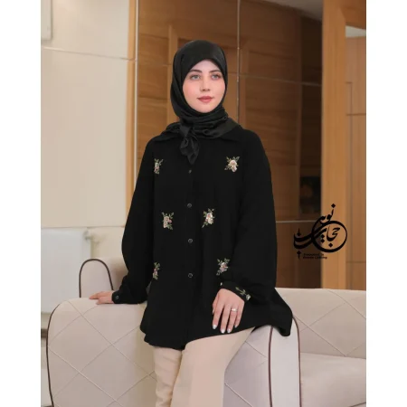 جلوی شومیز دکمهدار برای استفاده راحت و استایل کلاسیکتر.