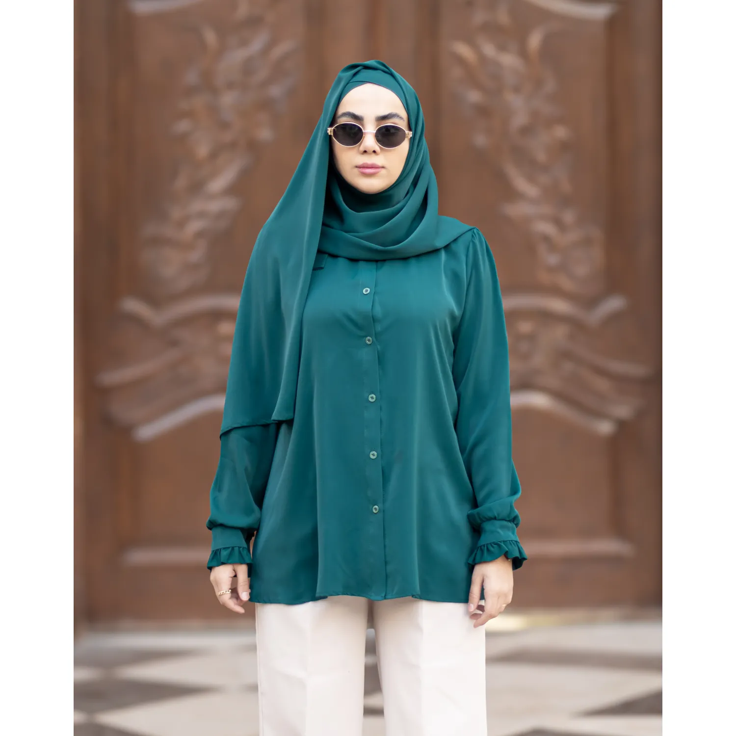 ست شومیز و شلوار و وست شکوفه