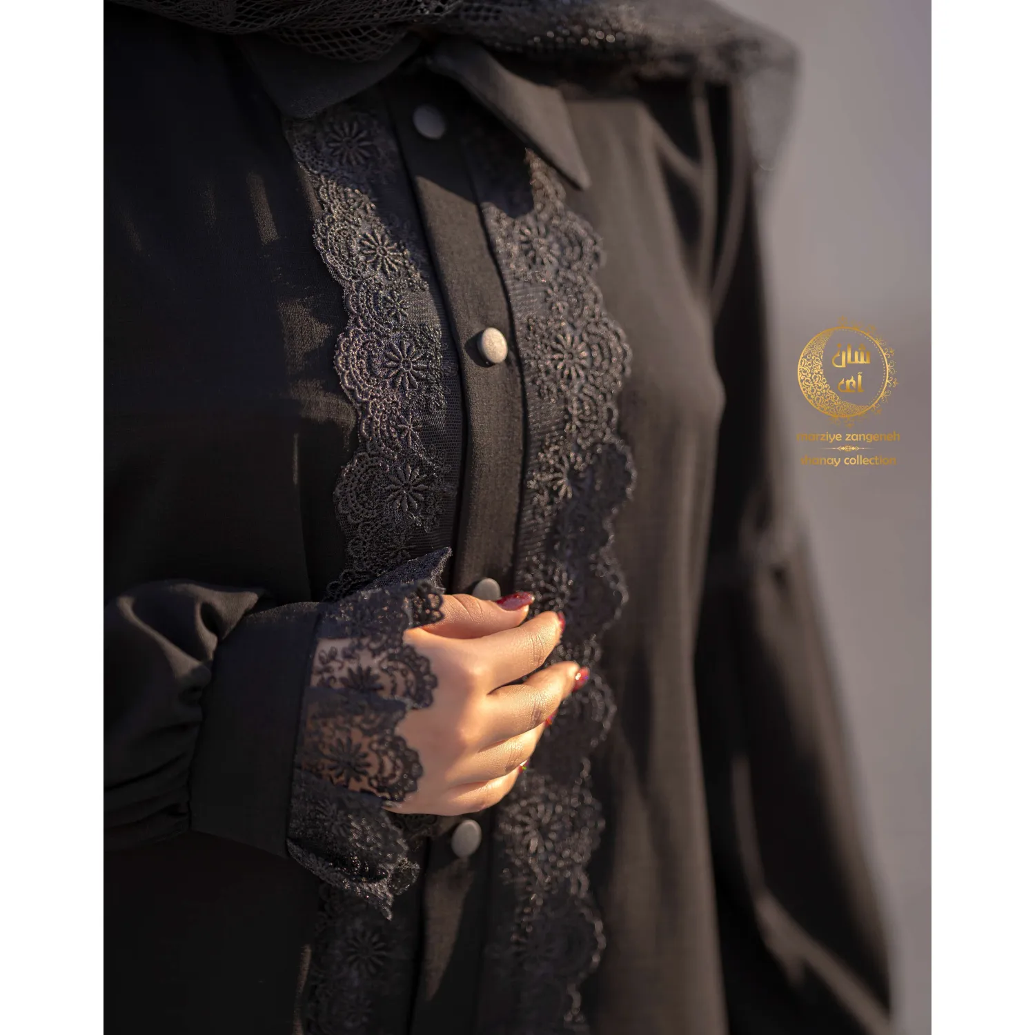 جلوی شومیز و لبه آستین دانتل وارداتی کارشده