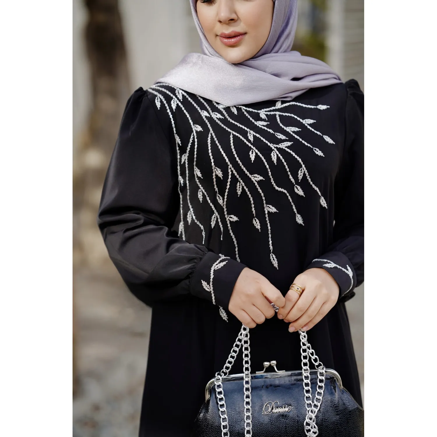 ✨جلوی عبا وسر آستین ها جواهر دوزی با دست شده