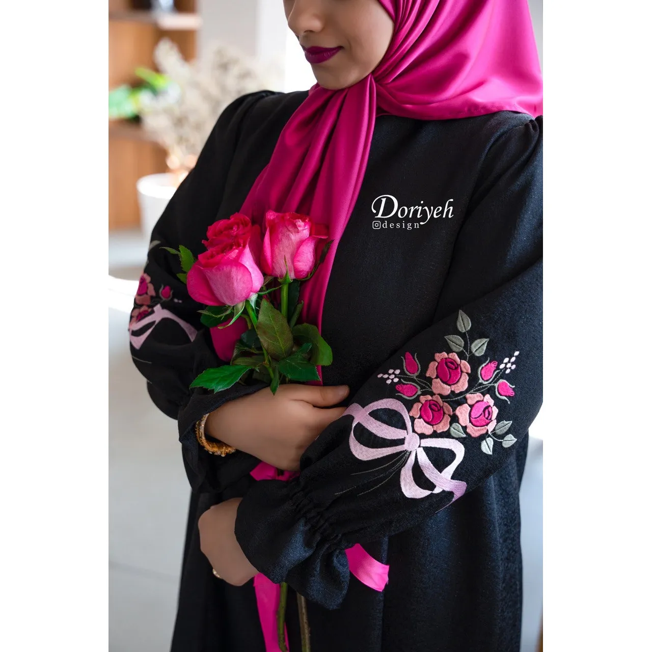 قسمت آستین و پشت عبا گلدوزی شده با نخ تماما ابریشم.