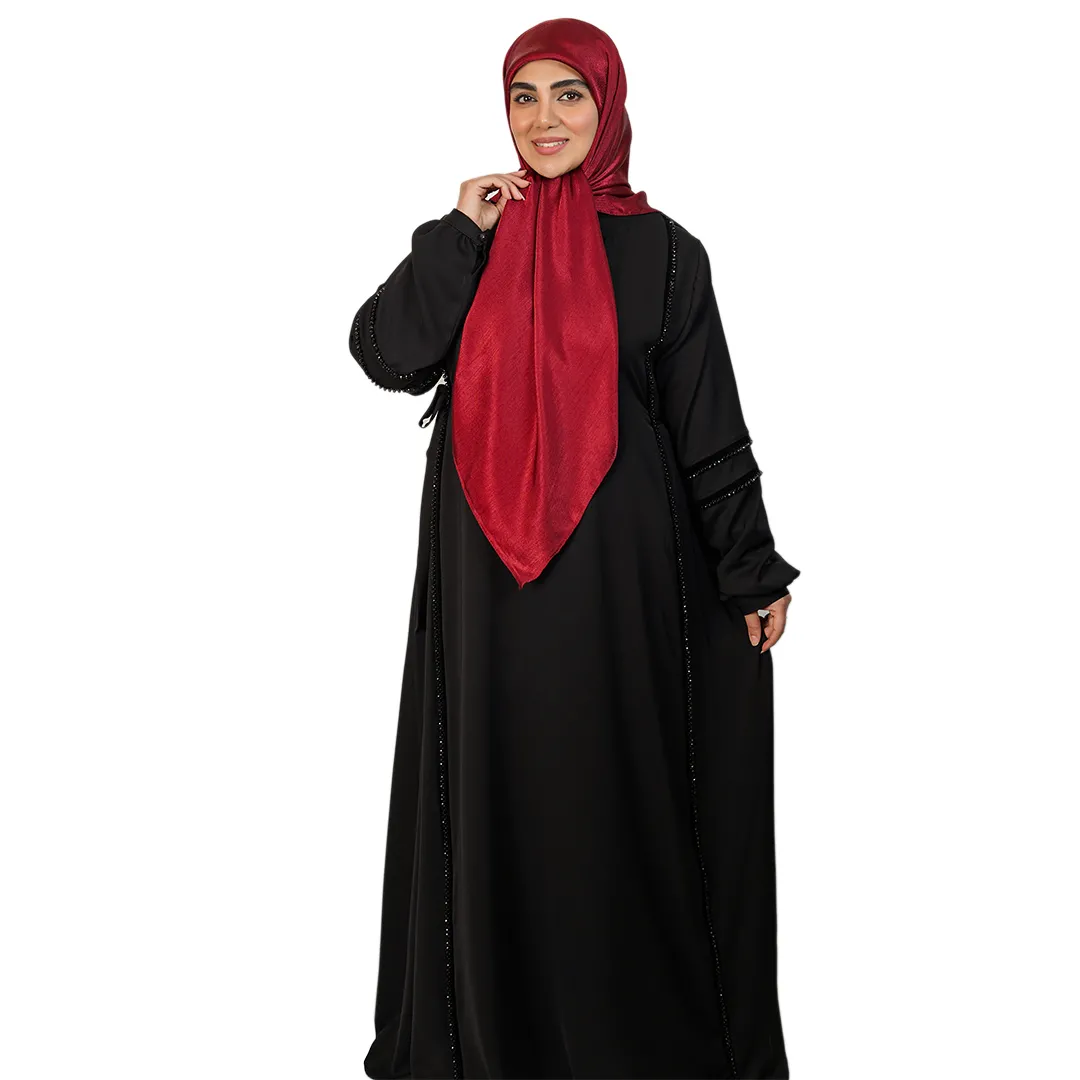 نوار کریستال که به شکلی ظریف و زیبا در قسمتهایی از عبا کار شده، آن را براق و شیک میکند و به پوشنده این امکان را میدهد تا در مجالس و مناسبتهای ویژه بدرخشد. این مدل همچنان راحتی و سادگی عبای نگار را حفظ کرده، اما با افزودن کریستالها، ظاهری خاص و مدرنتر پیدا کرده است.