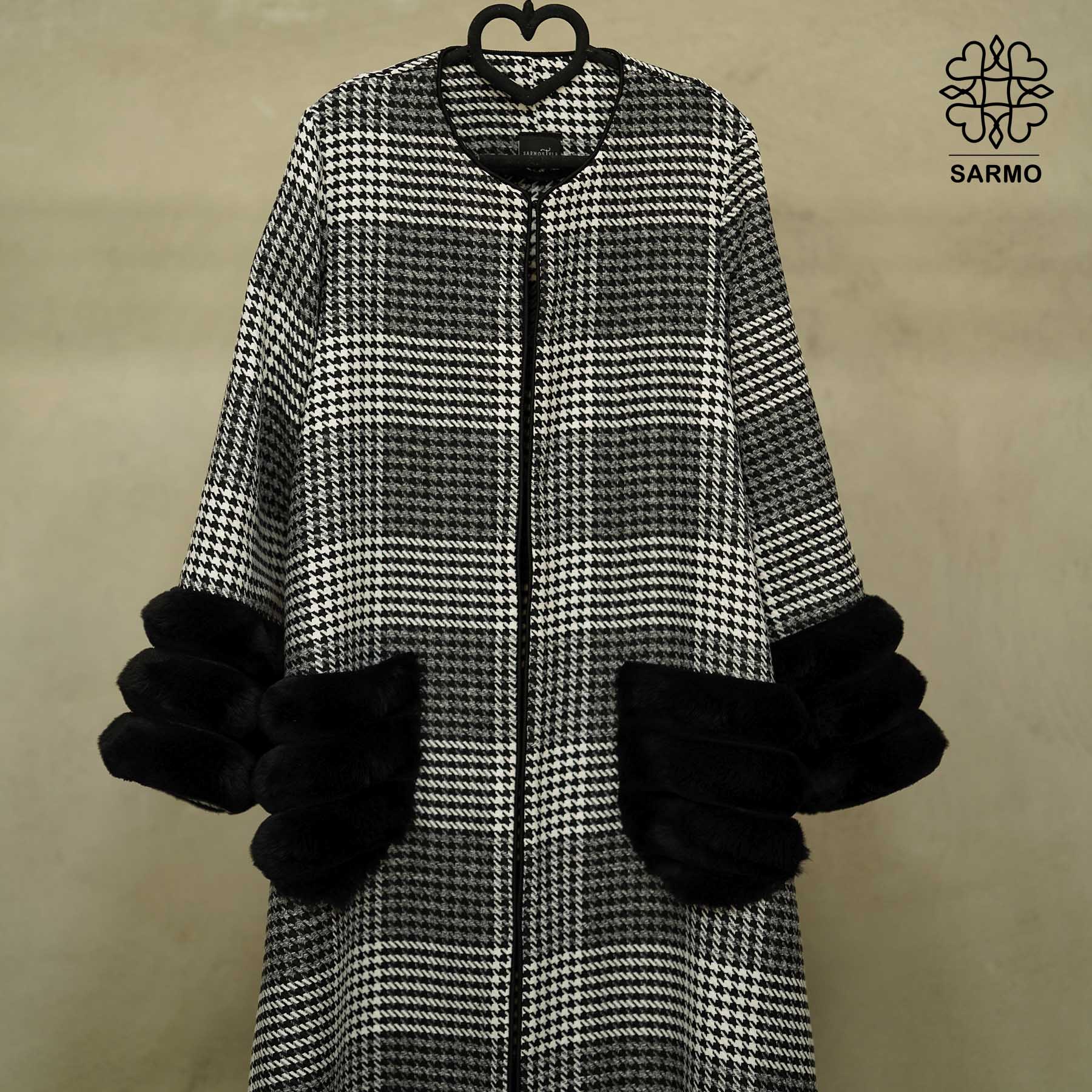 - ویژگیها: طراحی شیک و اصیل، مناسب استایلهای رسمی، زمستانی و محافل خاص. ترکیب الگوی پیچازی با خز مشکی، ظاهری مجلل و در عین حال مدرن ایجاد کرده است.