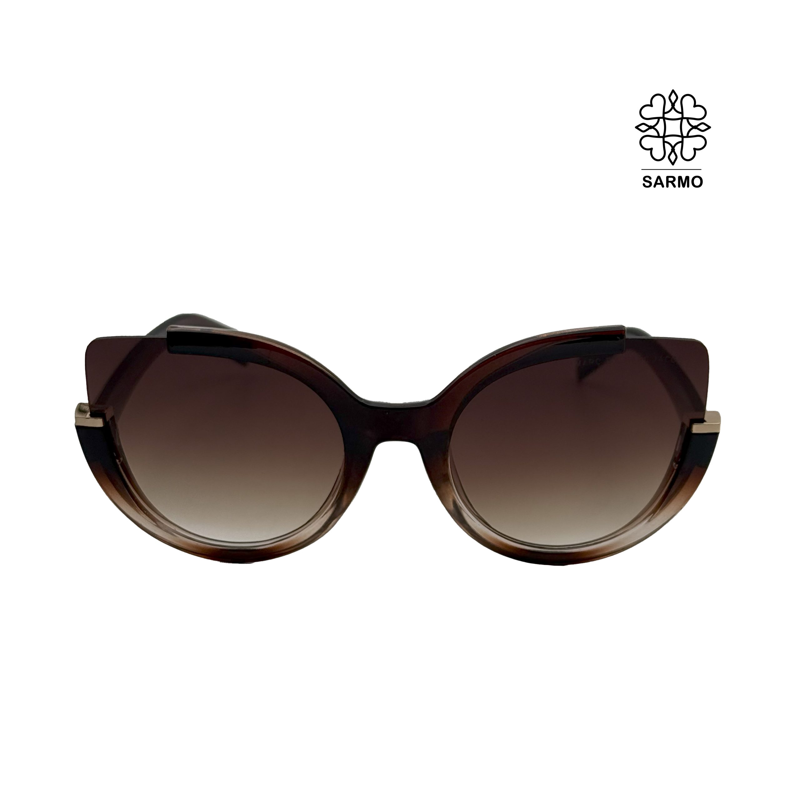 این عینک با فرم گربهای گرد و فریم قهوهای گرادیانی، بیشتر به صورتهای گرد، بیضی و مربعی میاد چون هم کشیدگی و هم نرمی به چهره میبخشه و چشمها رو برجستهتر نشون میده.