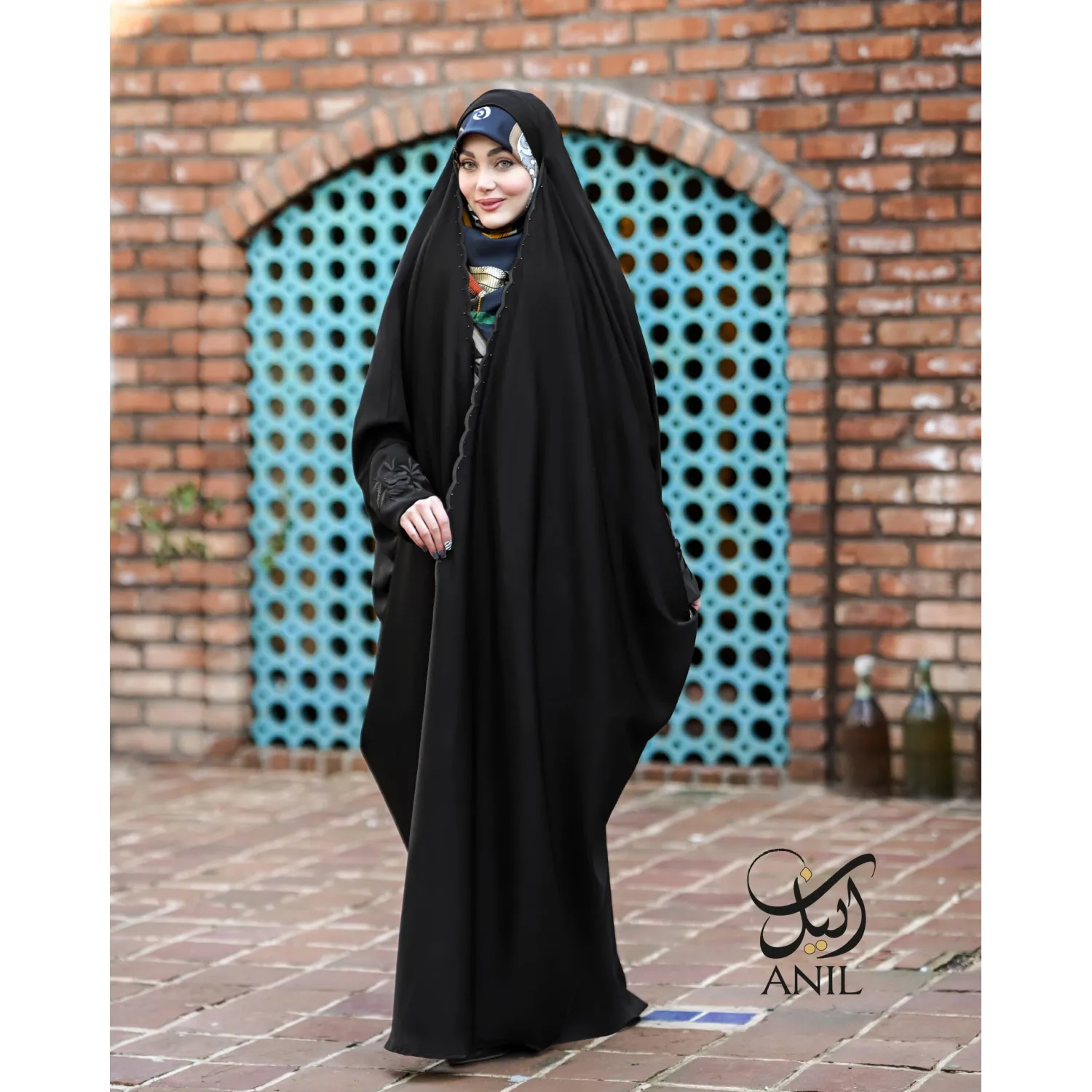 پارچه ایی سبک ، مشکی ، متراکم ، با برق کم روی پارچه ، ضمن اینکه پشت پارچه کرپ هست و اصلا سُر نمیخورد