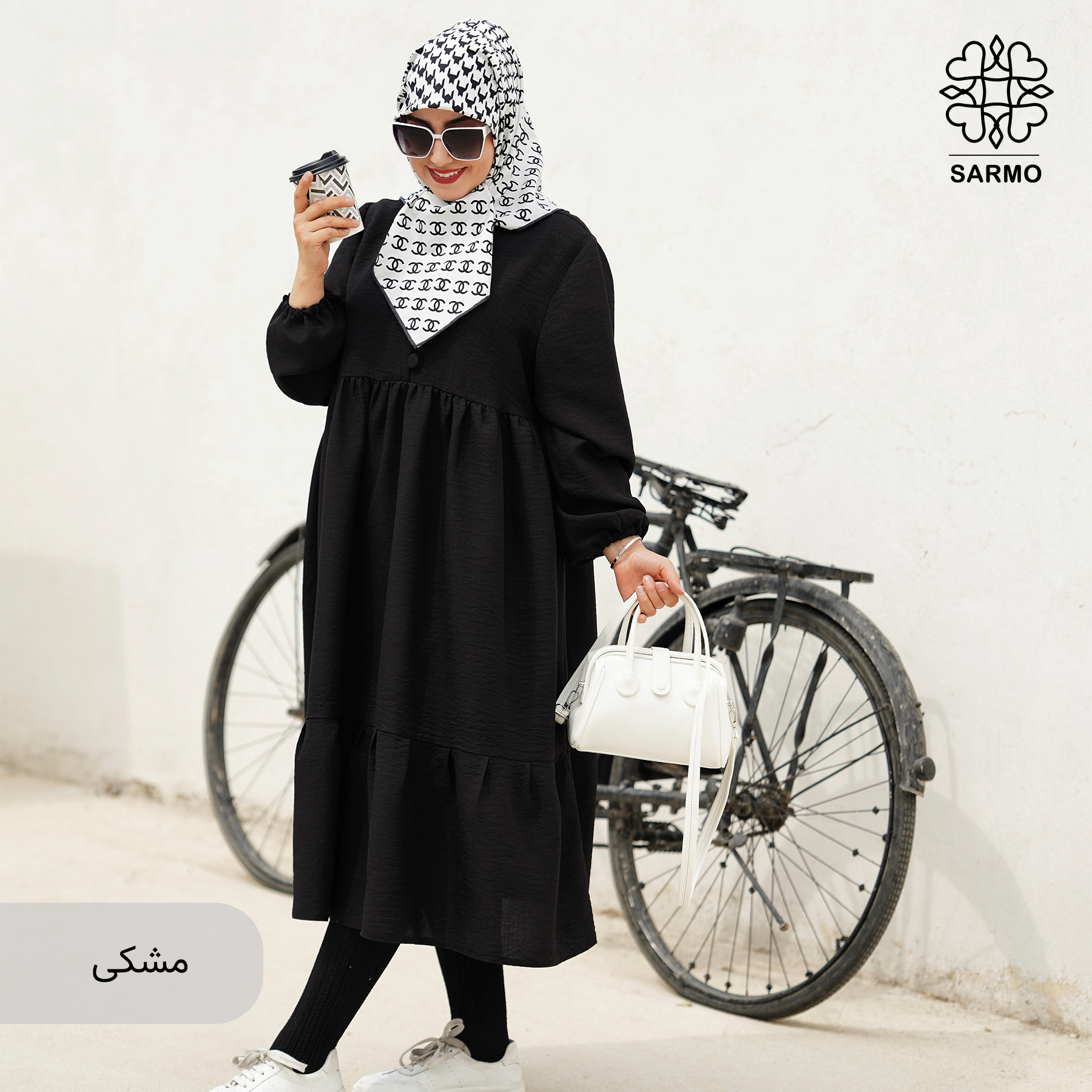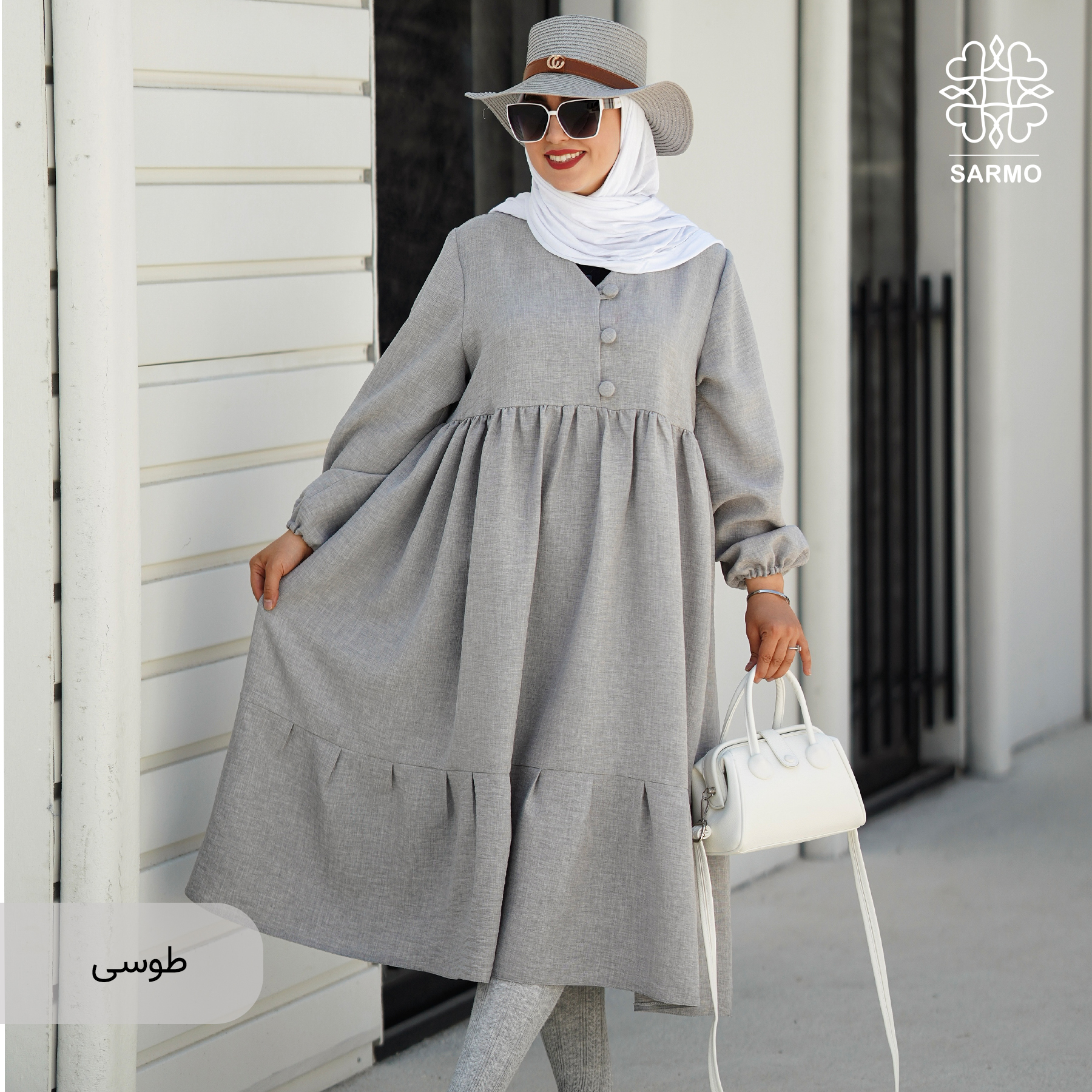 - پشت مانتو در قسمت کمر در هر طرف سهعدد پیله دارد.