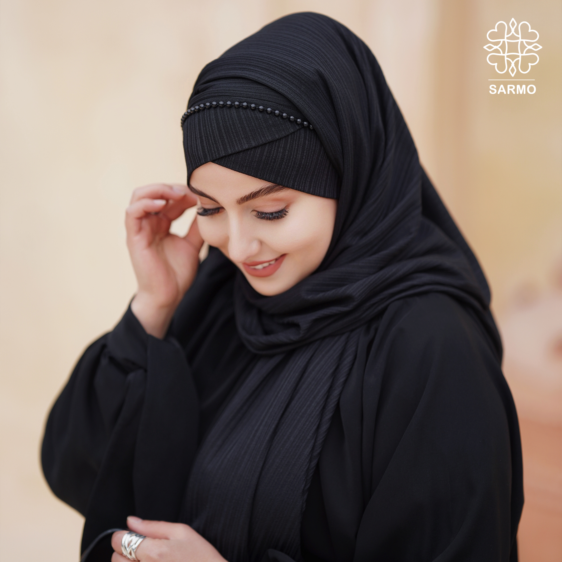 - ردیف مروارید مشکی در جلوی هدشال برای زیبایی بیشتر