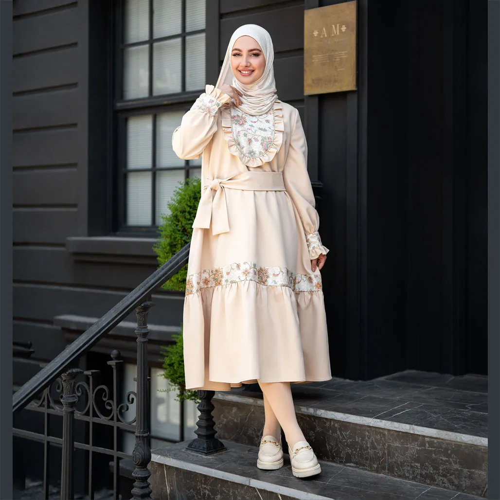 پیراهن شهره از مرغوب ترین پارچه فلورانس نسکافه ای رنگ تهیه شده است. این محصول یک اثر هنری است. با جلو سینه فوق العاده جذاب و آستین و دامن کار شده ای که دارد همه نگاه ها را مجذوب می کند. پارچه خنک و سبک است و برای تمامی فصول سال قابل استفاده خواهد بود. دوحت کار بسیار ظریف و تمیز انجام شده است. این محصول بسیار شبیه لباس هنرپیشه های سریال های تاریخی و فاخر است. سریال هایی مانند شهرزاد و خاتون و …