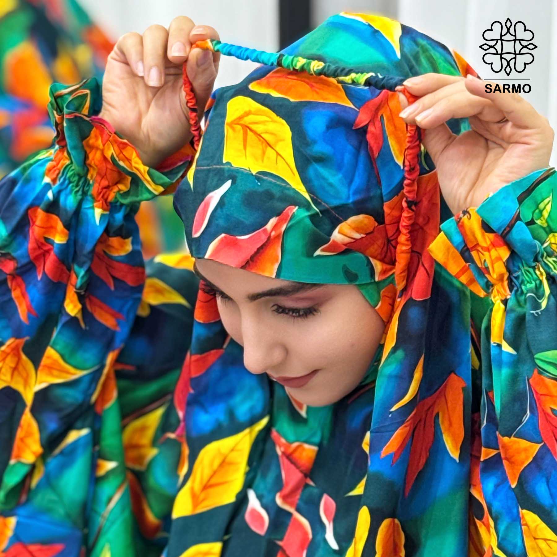 پارچه کار آبرفت دارد اما میزان آبرفت آن در دوخت در نظر گرفته شده و با شستشوی چادر سایز کوچک نمیشود.