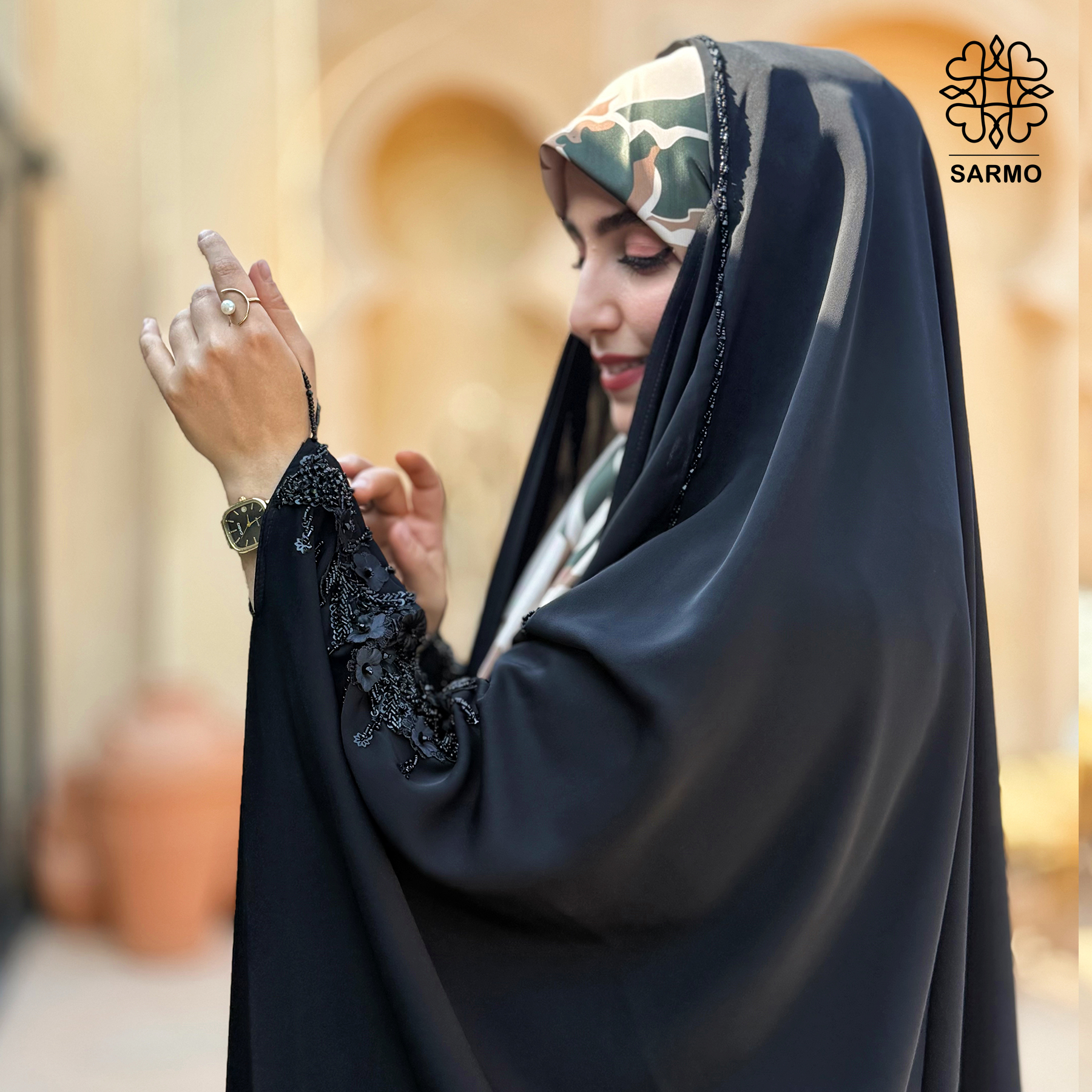 - برای اندازهگیری دقیق چادر به این نکته توجه کنید: قد خود شخص منهای پنج سانت