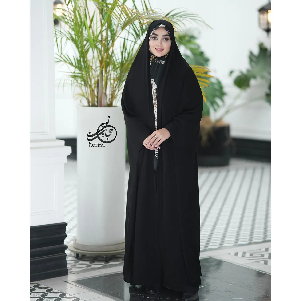 چادر خبرنگاری ساده با جنس کرپ حریر اسود جت بلک درجه یک گرید a 😍