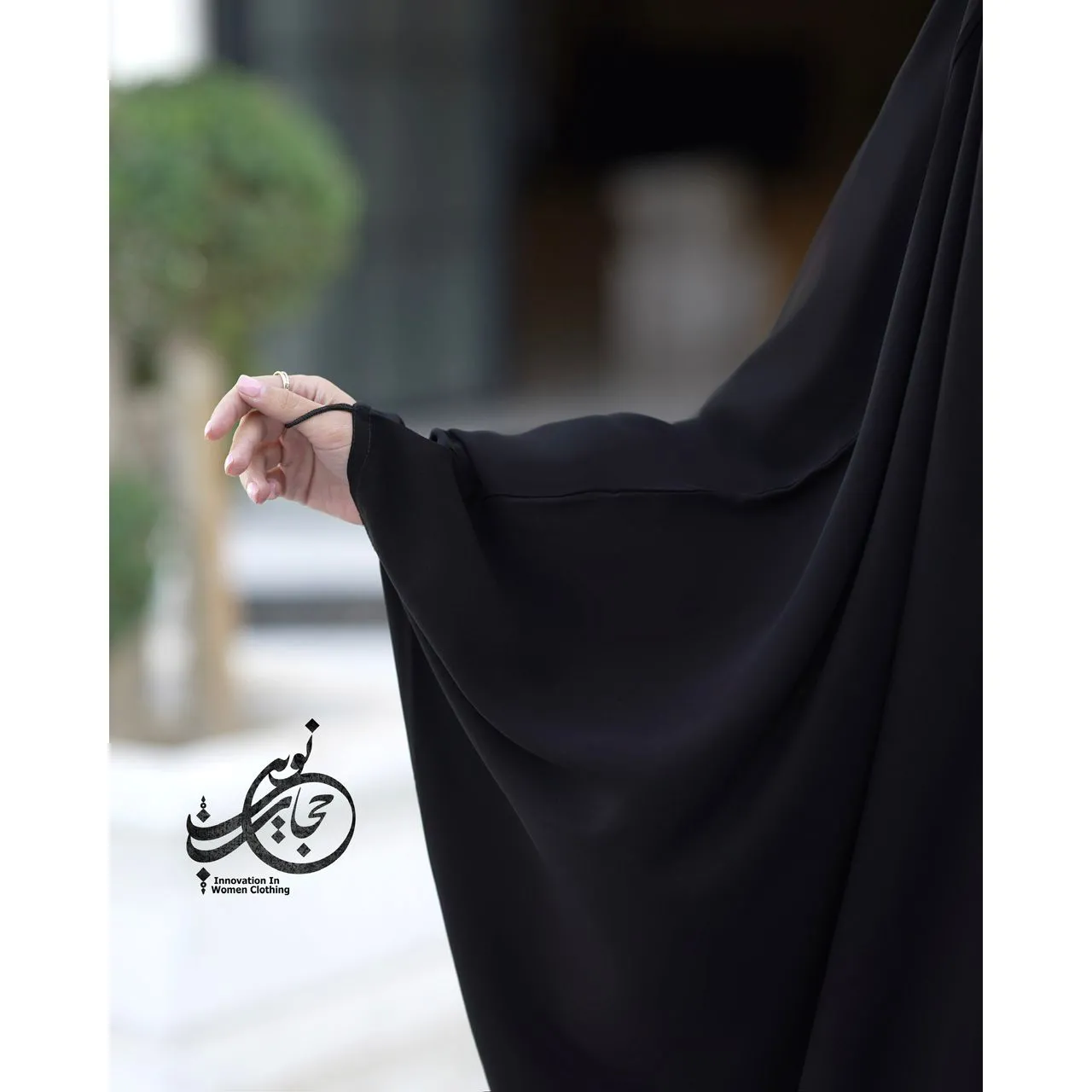 چادر عربی اصیل (عبا) ساده، ساده و بدون تزیینات، با جنس کرپ حریر اسود جت بلک درجه یک گرید a