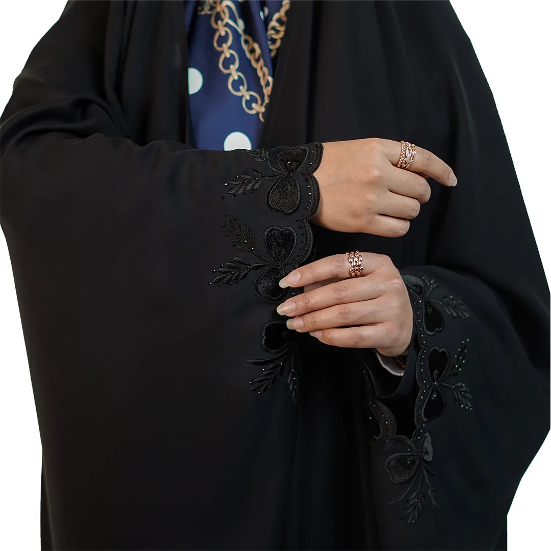 چادر افرا یک مدل زیبا و خاص است که طراحی آن از چادر عربی الهام گرفته شده، اما با جزئیات منحصربهفردی تزئین شده است. یکی از ویژگیهای بارز این چادر، گلدوزیهای طرح گندم و پاپیون روی آستینهای آن است که جلوهای لطیف و چشمنواز به آن میبخشد
