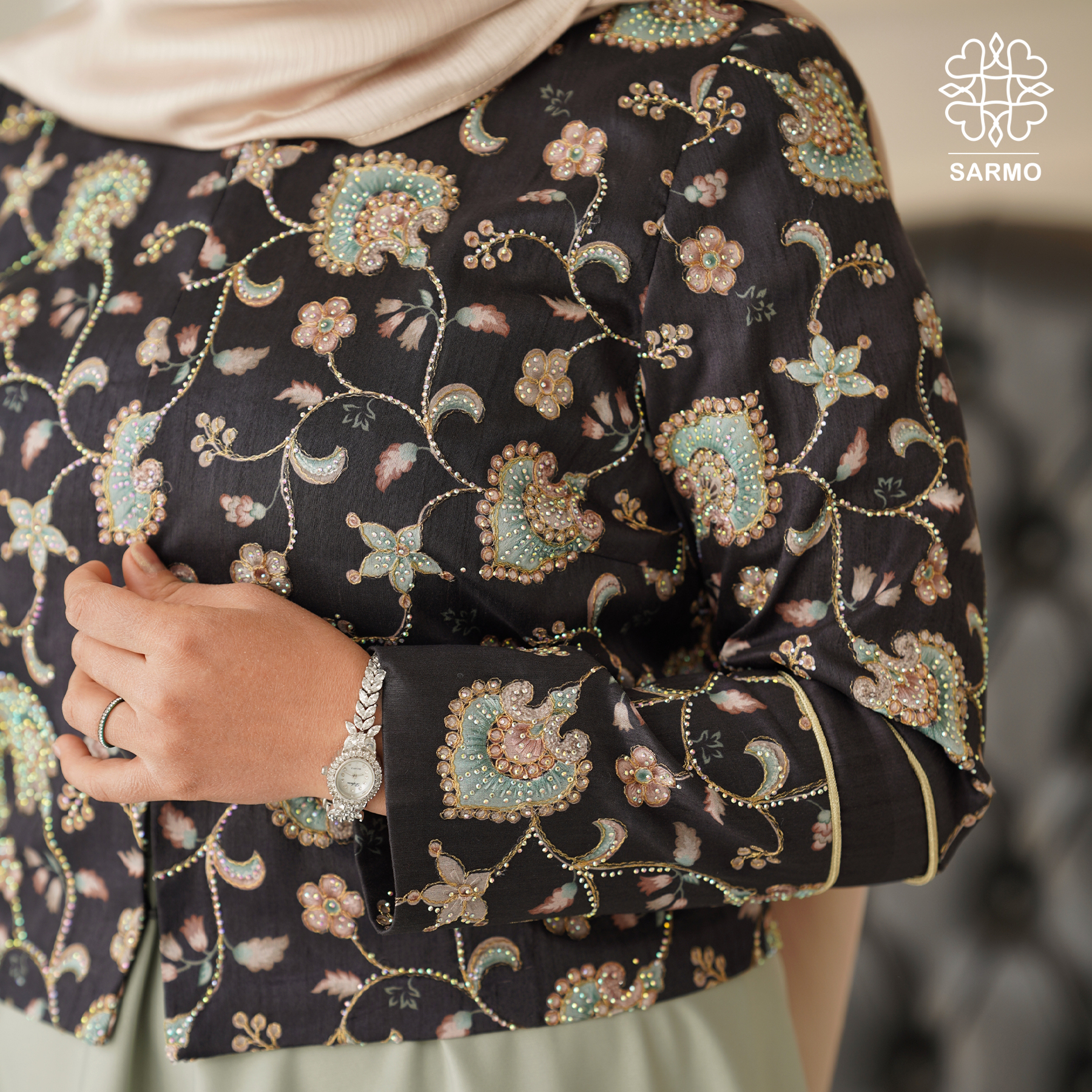 - تزئینات: نگینهای درخشان، با ظرافت تمام روی پارچه کت کار شدهاند و جلوهای مجلسی و باشکوه به آن بخشیدهاند. نحوه نگینکاری به گونهای است که در عین زیبایی، از دوام بالایی برخوردار است.