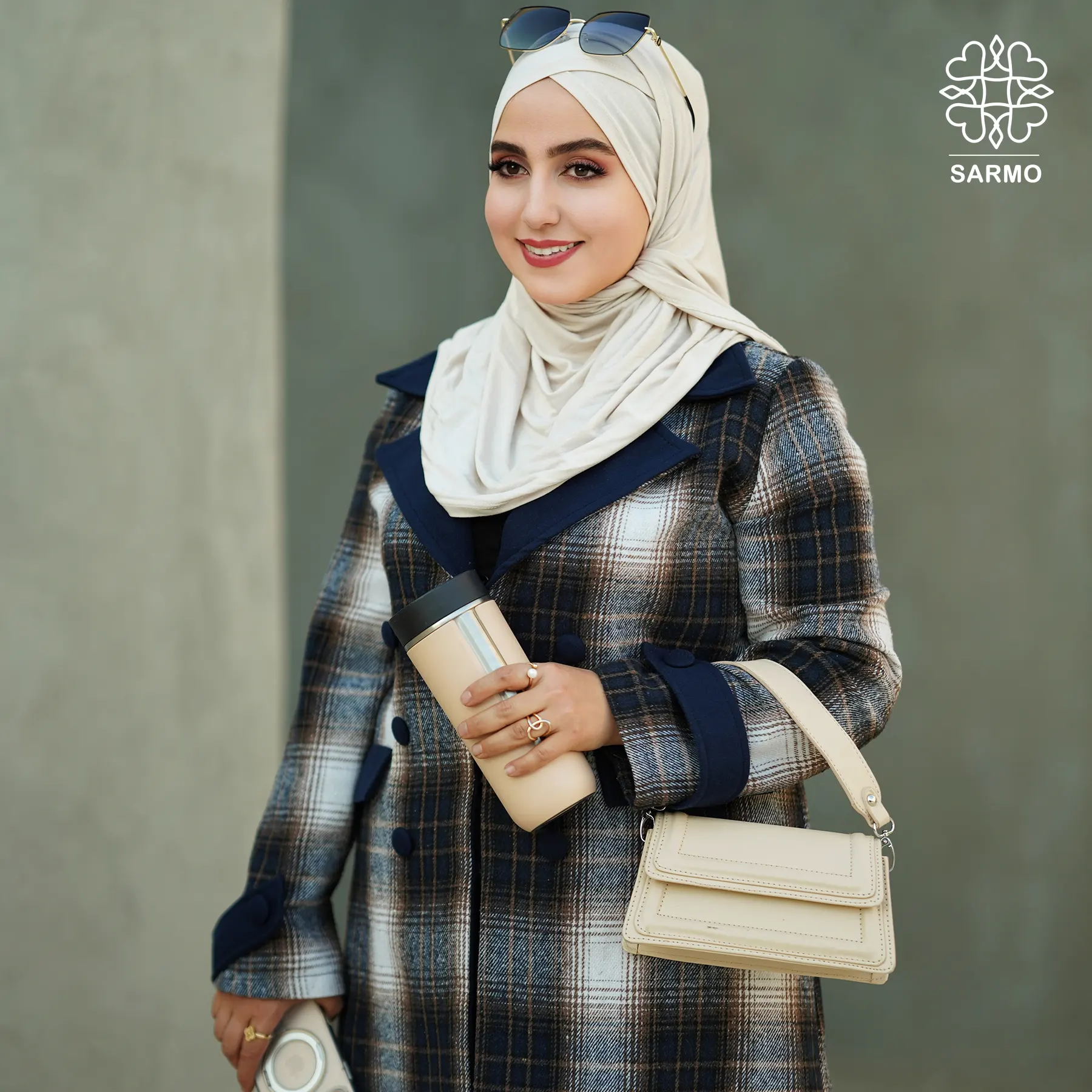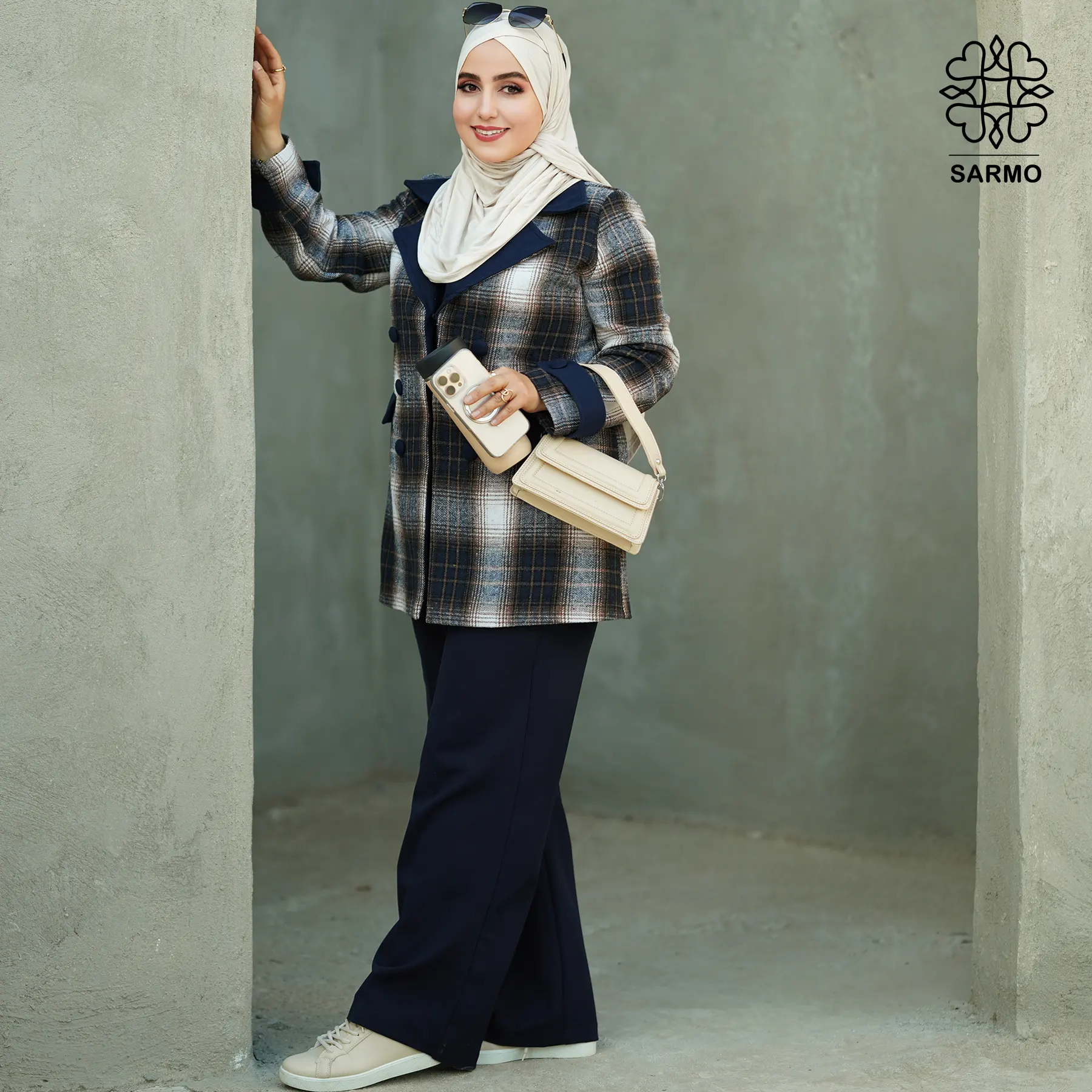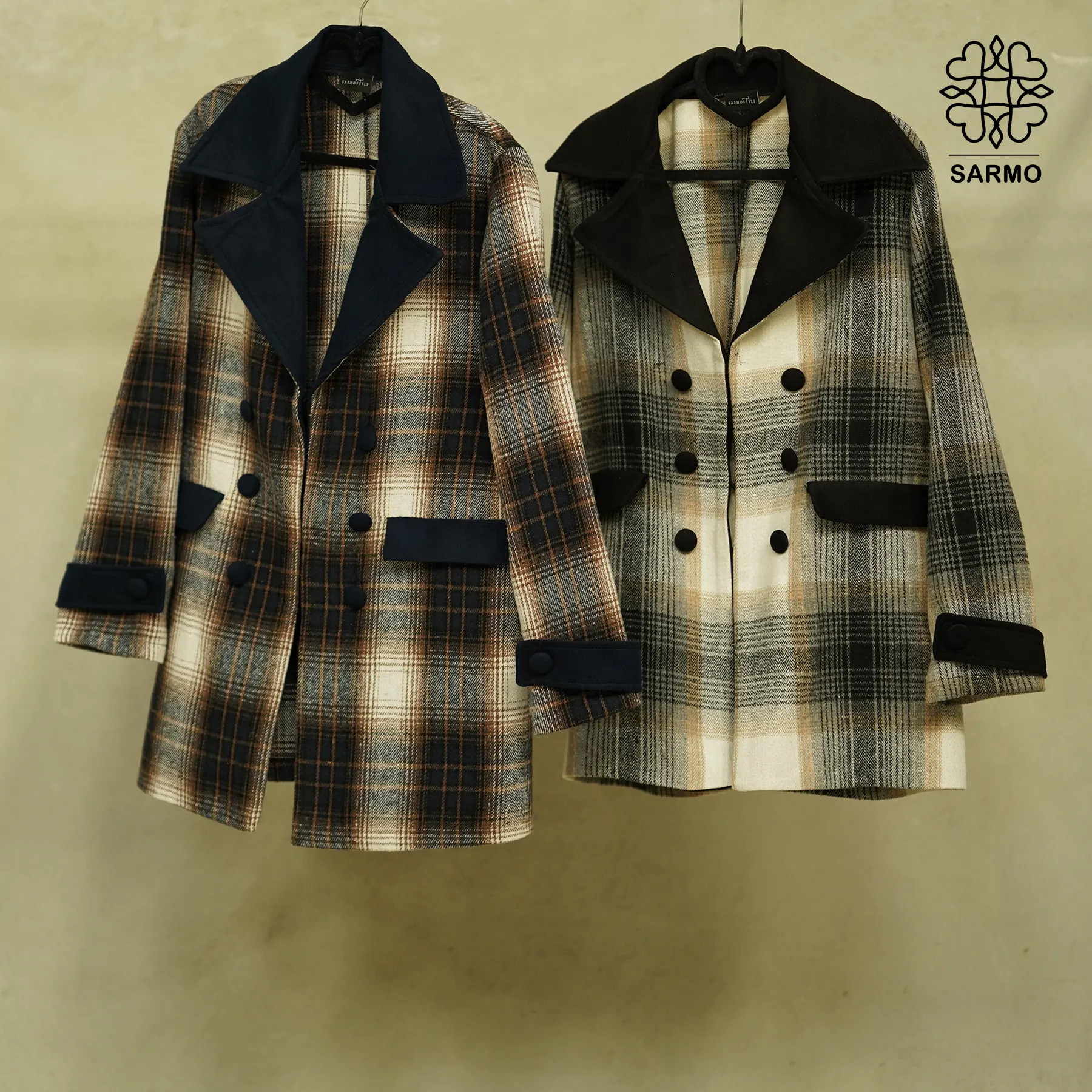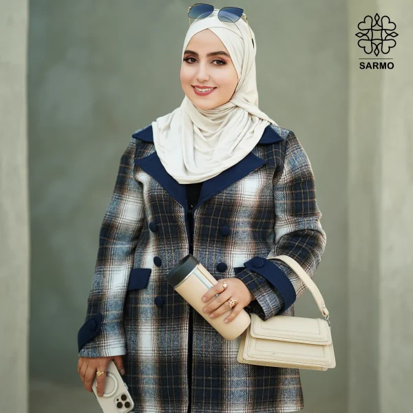 مدل یقه: دارای یقه انگلیسی با طراحی کلاسیک و ظریف که ظاهر کت را رسمی و خوشفرم میکند.