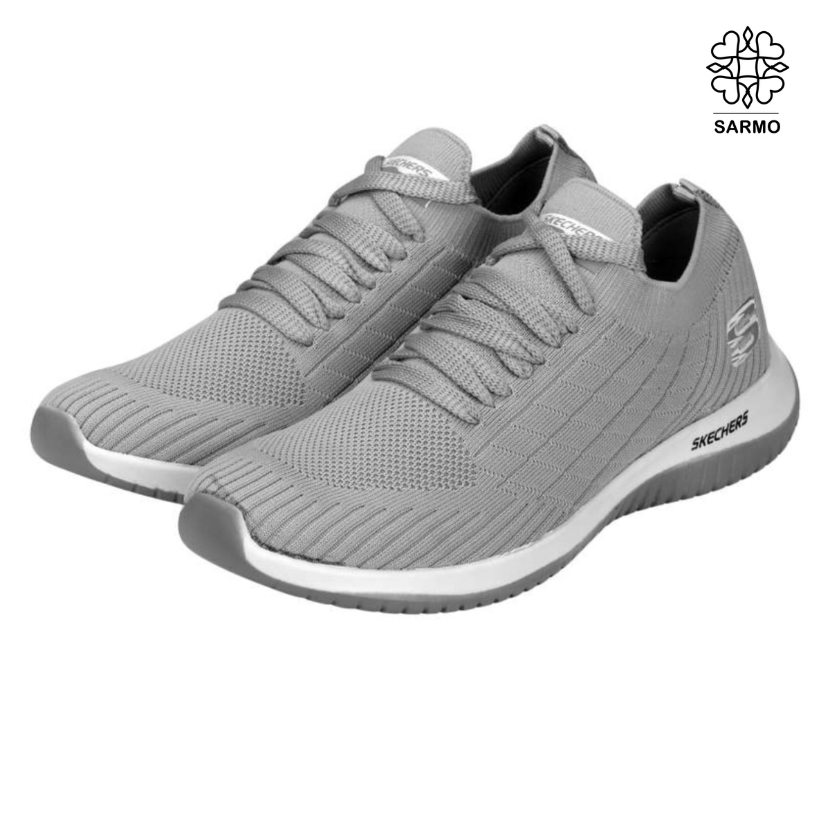 کفش پیاده روی زنانه طوسی روشن اسکیچرز بافت