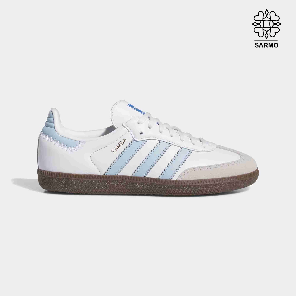 کفش کتانی زنانه سامبا سفید آبی samba adidas