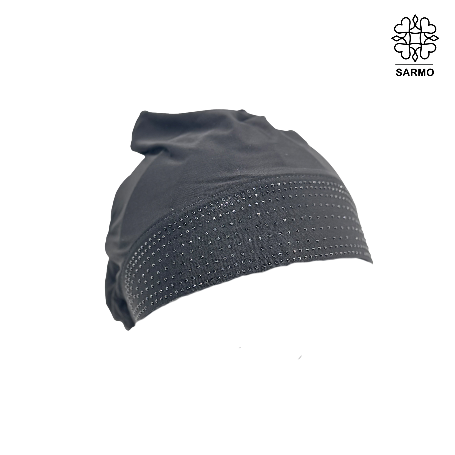- این محصول از جنس ریون بسیار درجه یک تولید شده است. روی نقاب این کلاه حجاب، نگین با کیفیت و زیبا کار شده که ریزش ندارد.